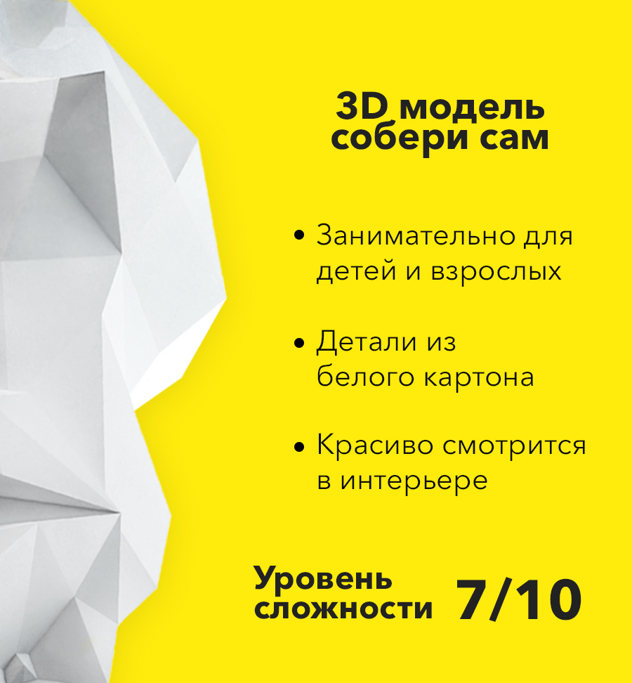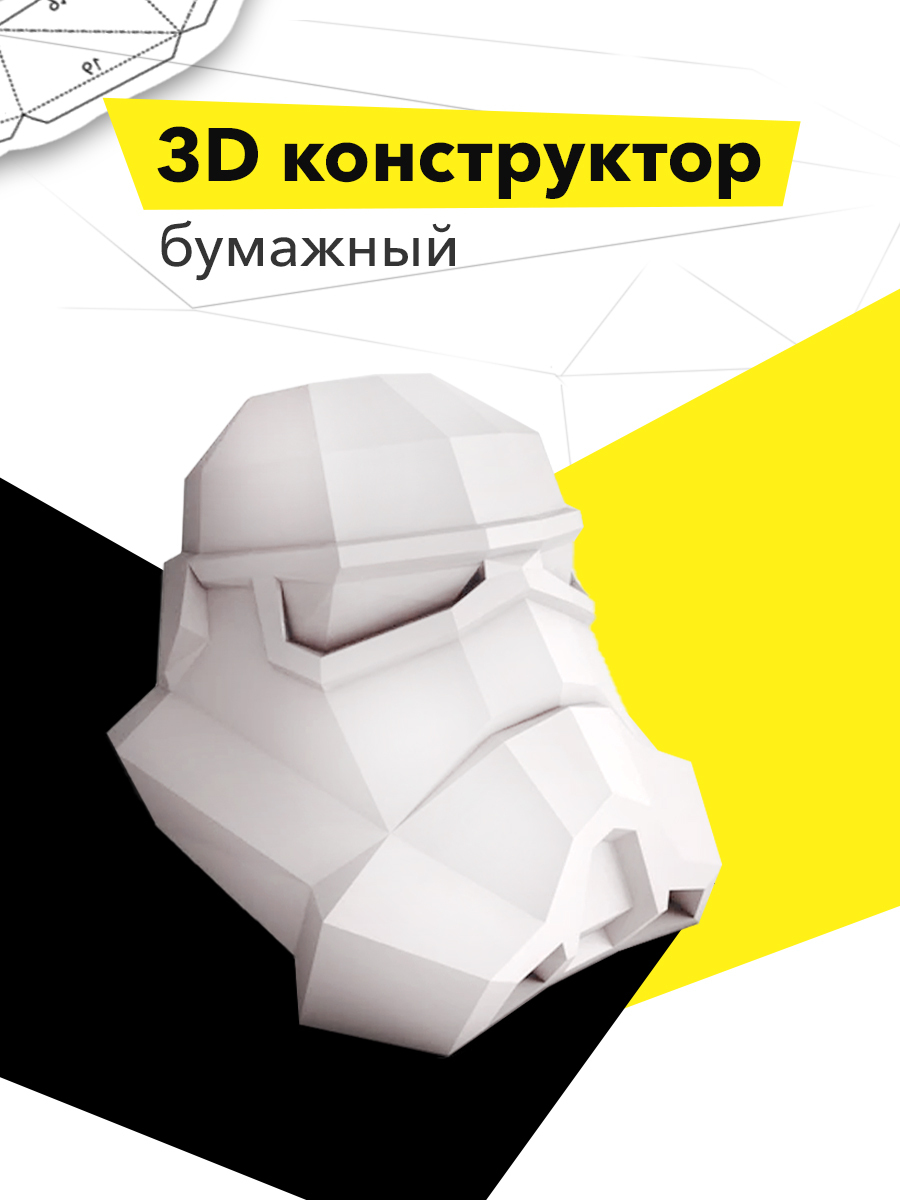 3D конструктор бумажный "Шлем" белый, оригами papercraft собери сам