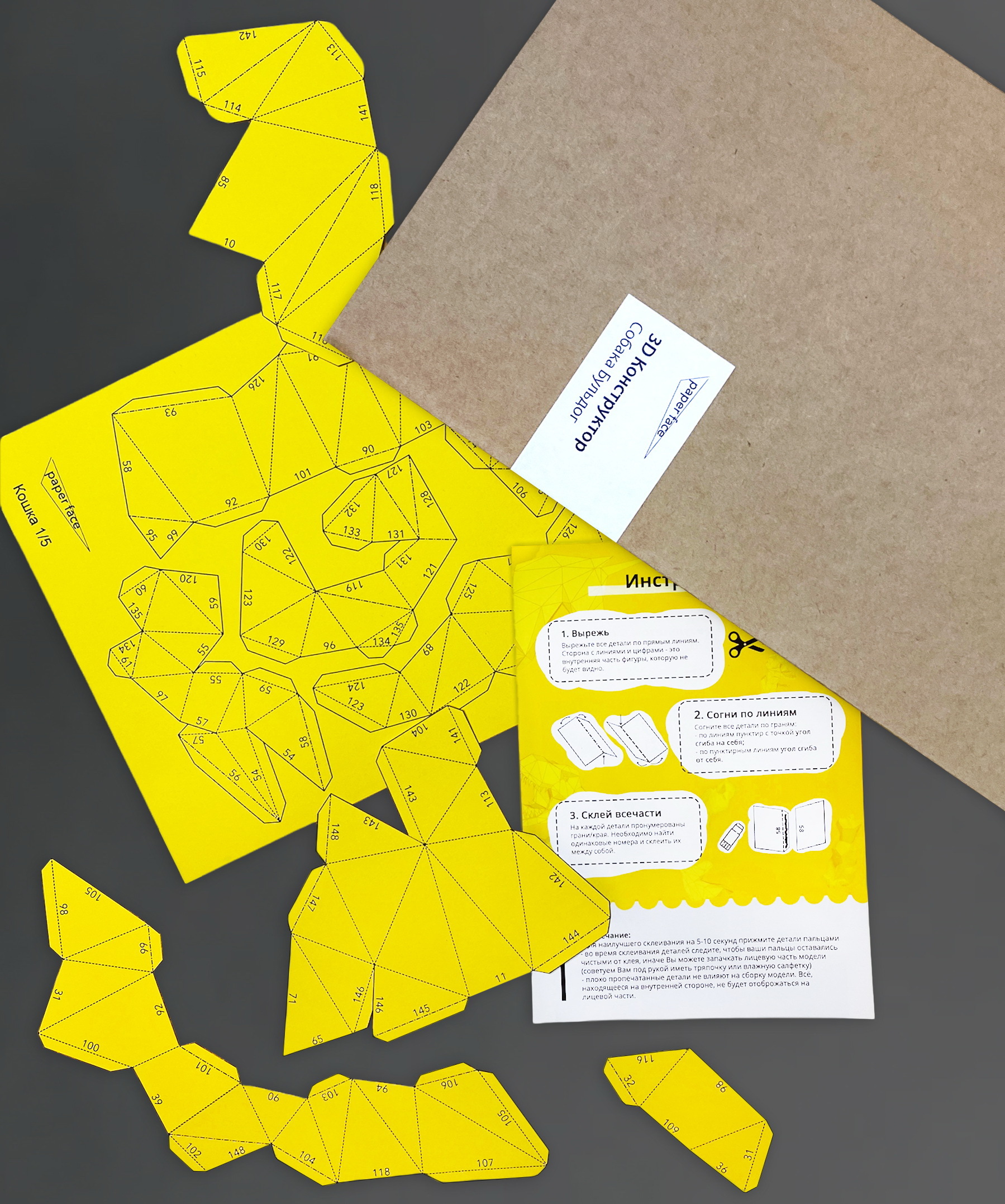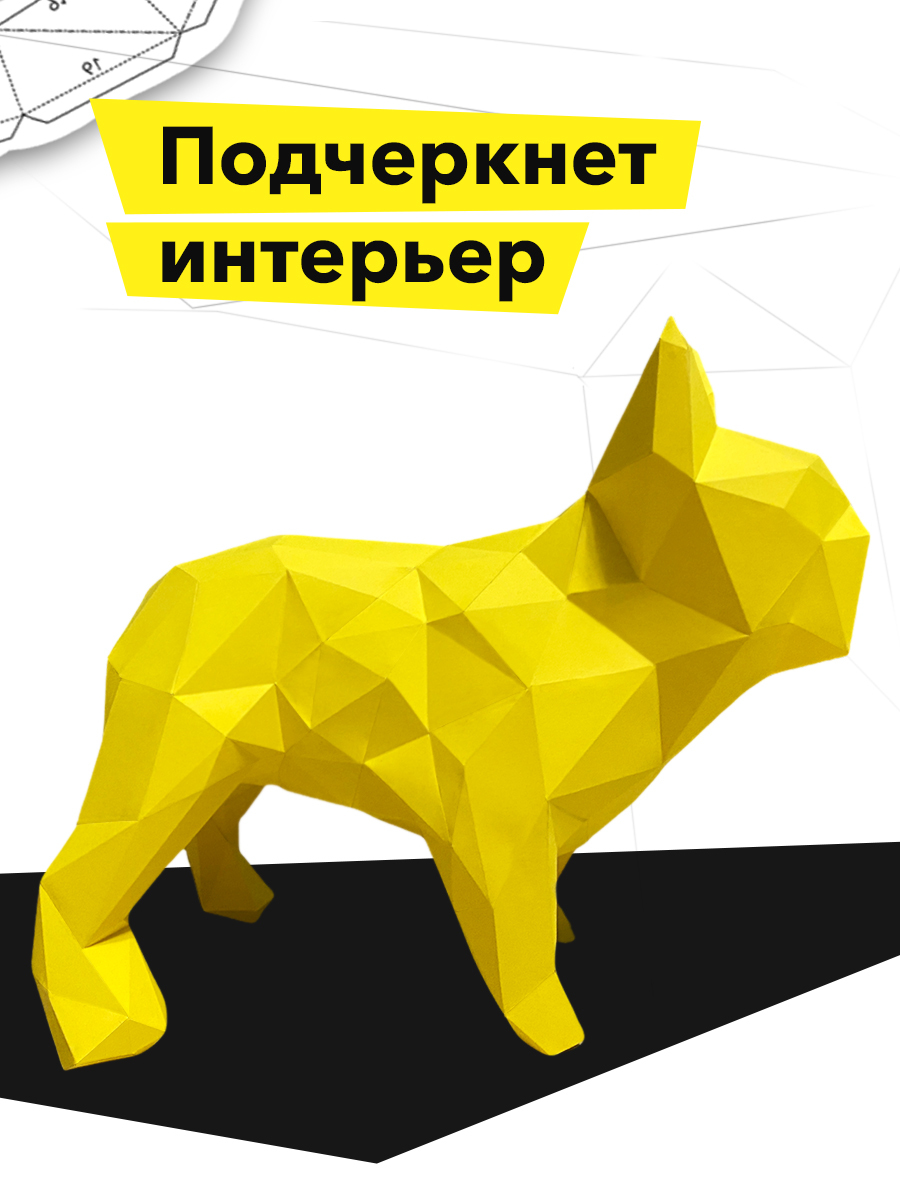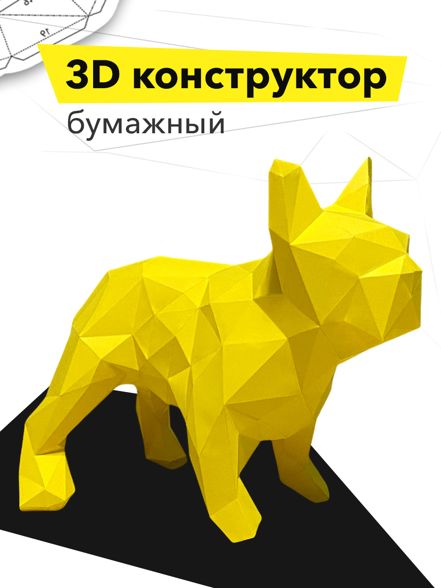 3D конструктор из бумаги "Собака бульдог" желтый, бумажный оригами собери сам, papercraft для детей и взрослых