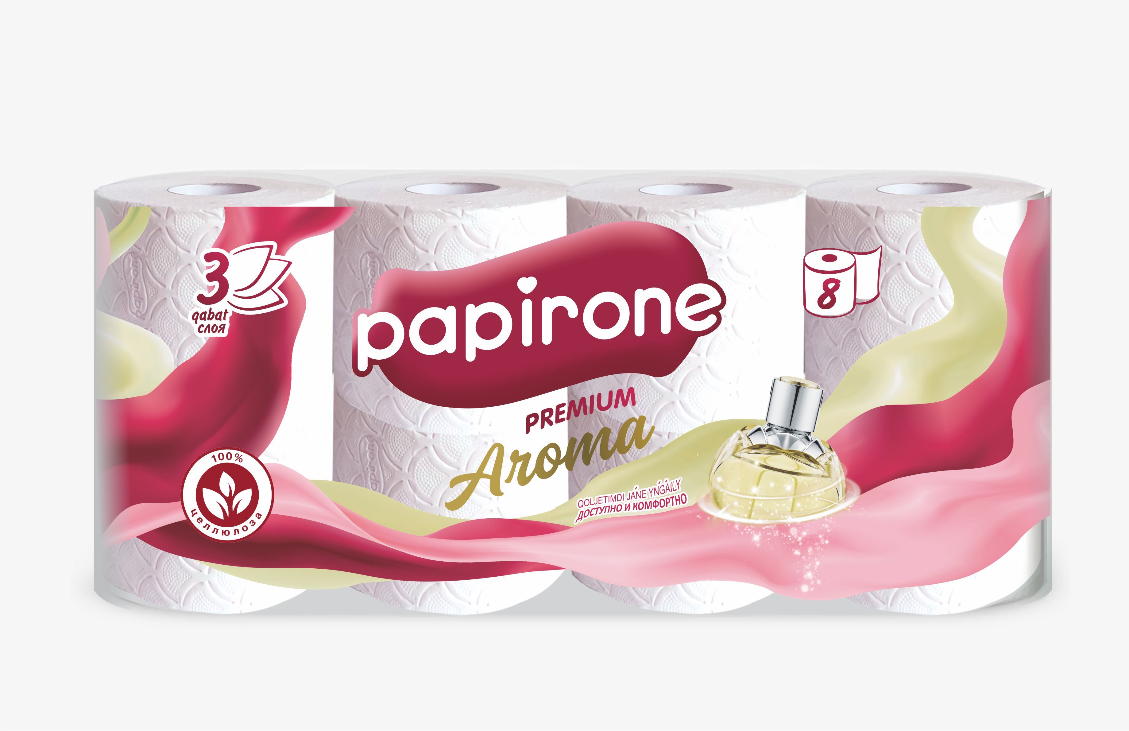 Туалетная бумага Papirone PREMIUM Aroma, трехслойная, 8 шт.