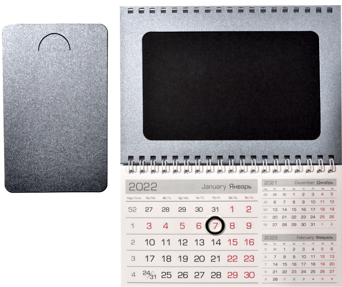Магнитный календарь-фоторамка. С магнитным курсором. МАГИЧЕСКИЙ СЕРЫЙ