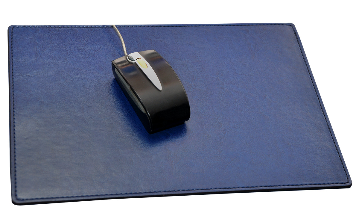 Коврик для мыши настольный, 21х30 см., кожаный. Синий.