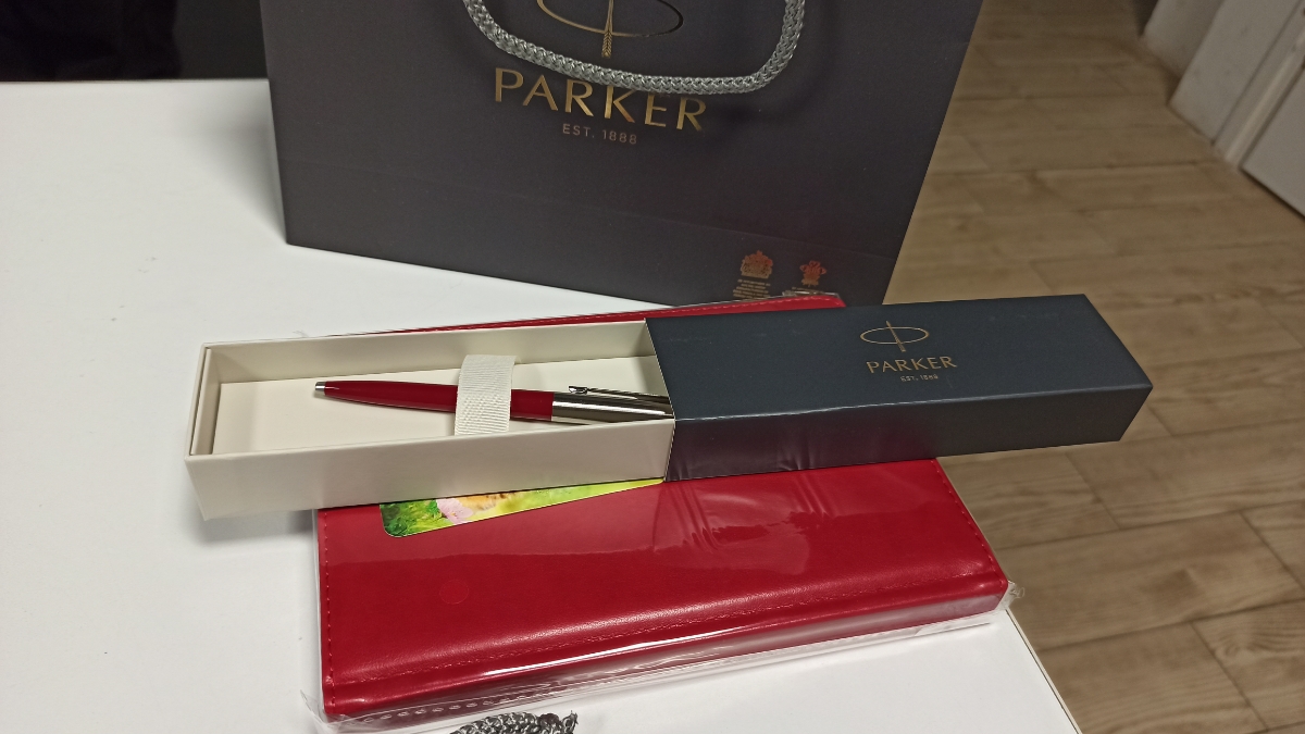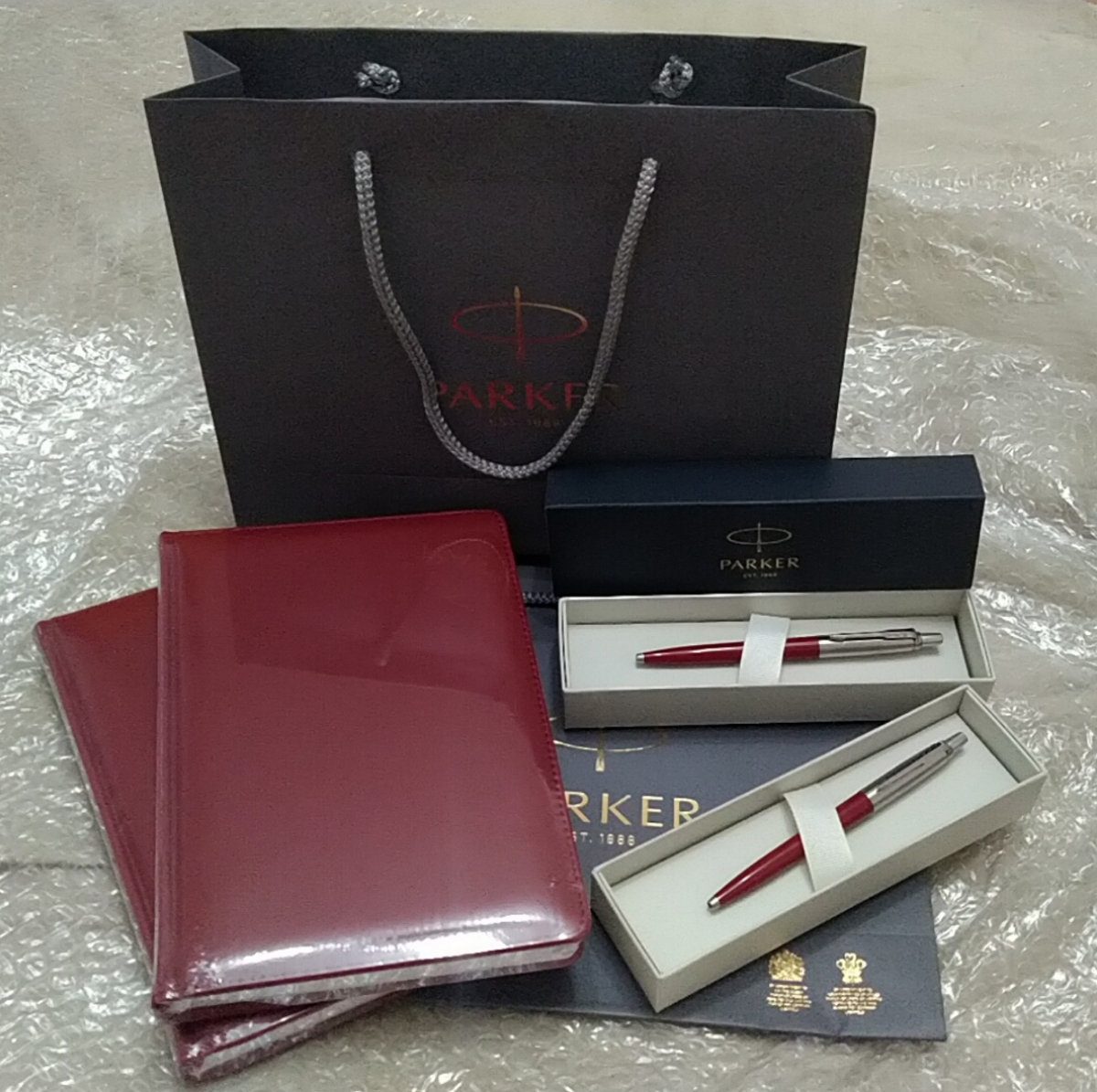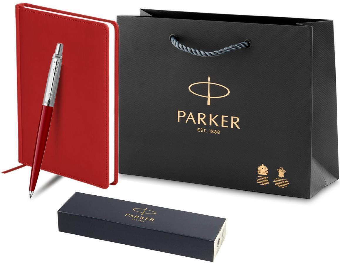 Набор шариковая ручка Parker Jotter K60 Red красный корпус и ежедневник алый с белыми страницами