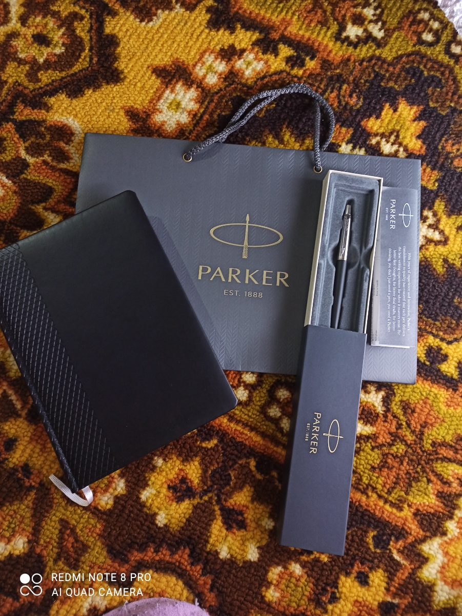 Подарочный набор: Шариковая ручка Parker Jotter, стержень:MBlue и Ежедневник черный недатированный 2076052