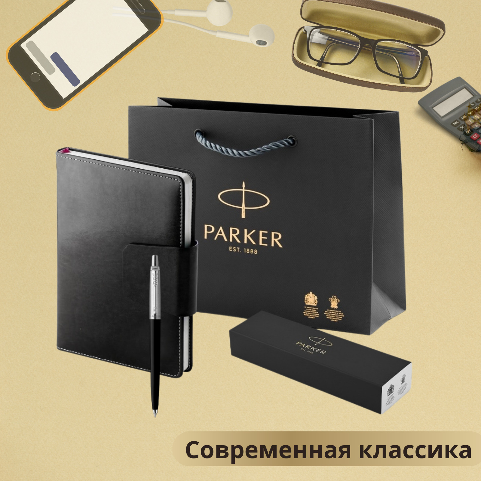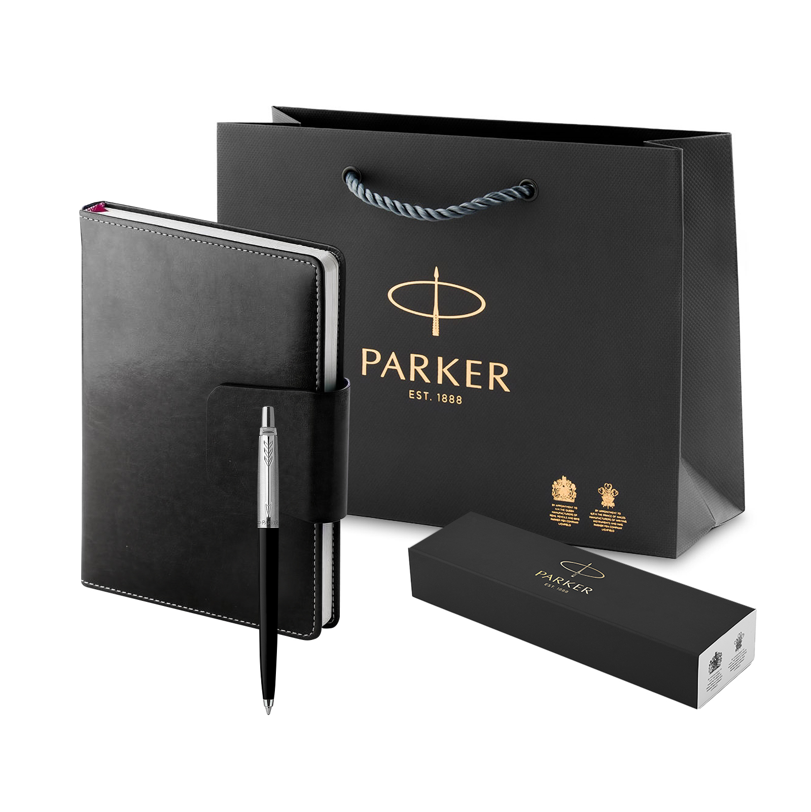 Ручка Parker "Jotter Core" в подарок недатированный черный ежедневник и фирменный пакет Parker