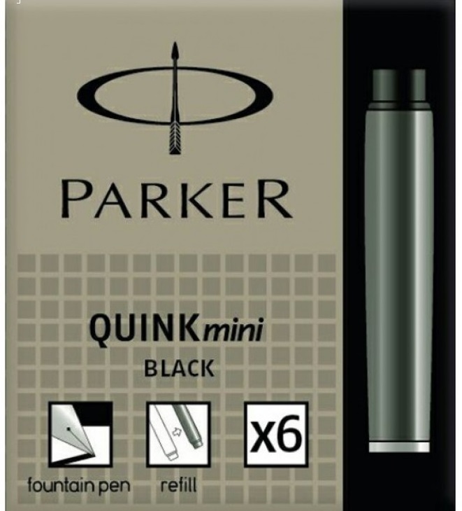Parker Картридж-мини с чернилами для перьевой ручки QUINK SHORT цвет черный 6 шт
