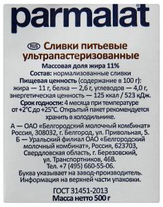 Сливки "Parmalat" ультрапастеризованные 11%, 0.5л