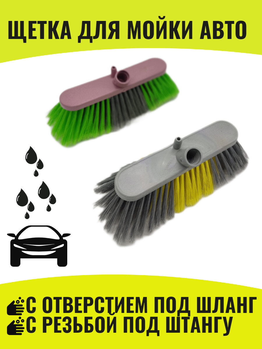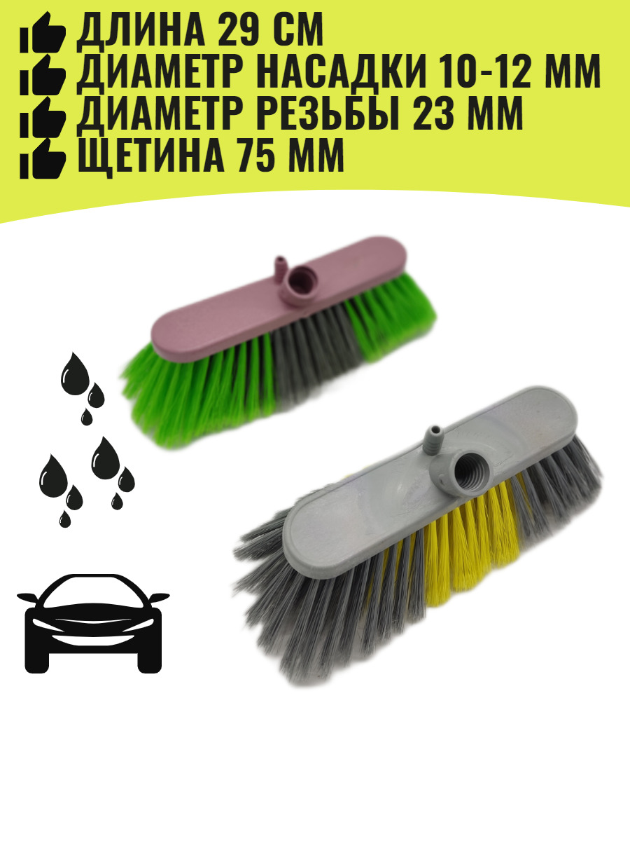 Щетка для мытья автомобиля с отверстием под шланг и штангу 29 см, высота щетины 7.5 см.