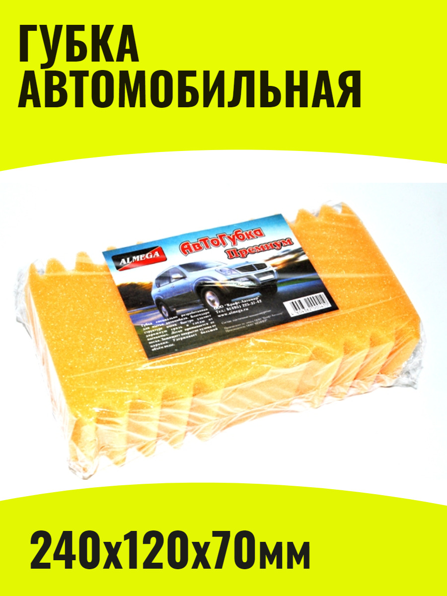 Губка для мойки авто автомобильная большая 240х120х70мм