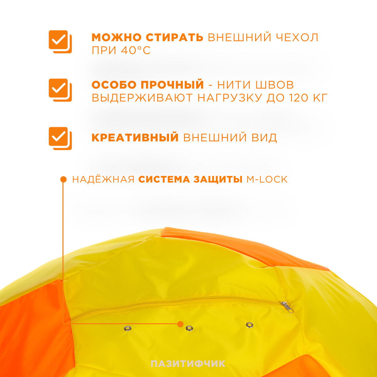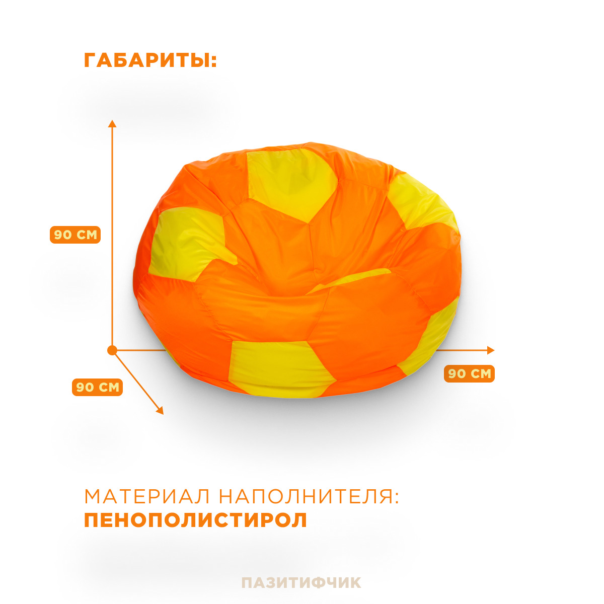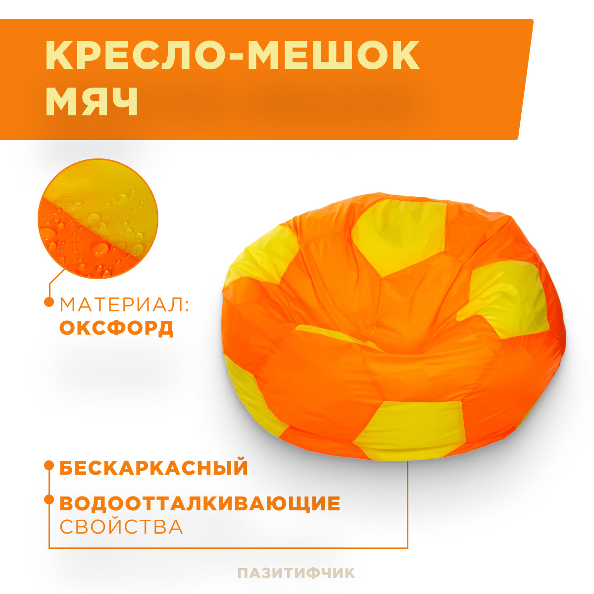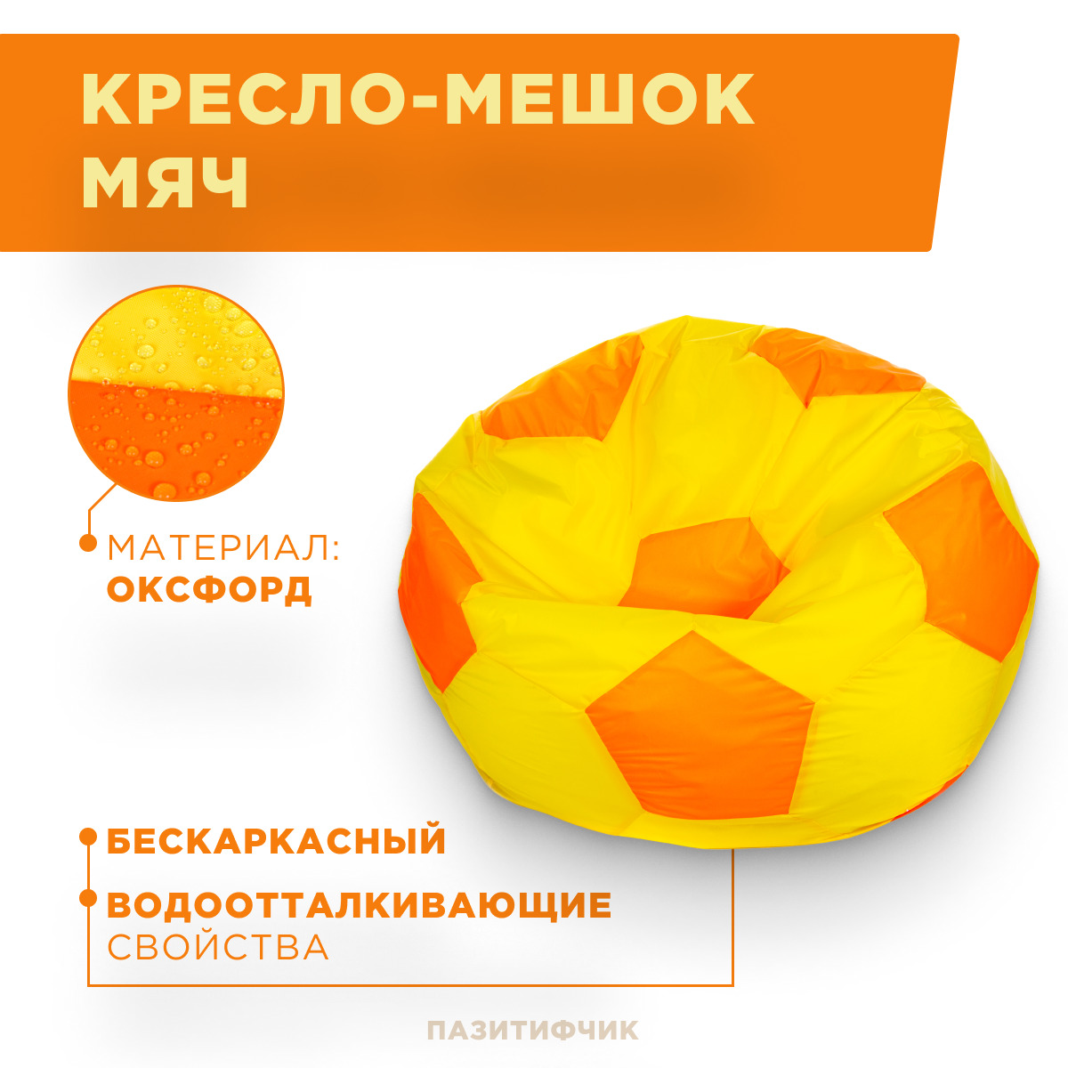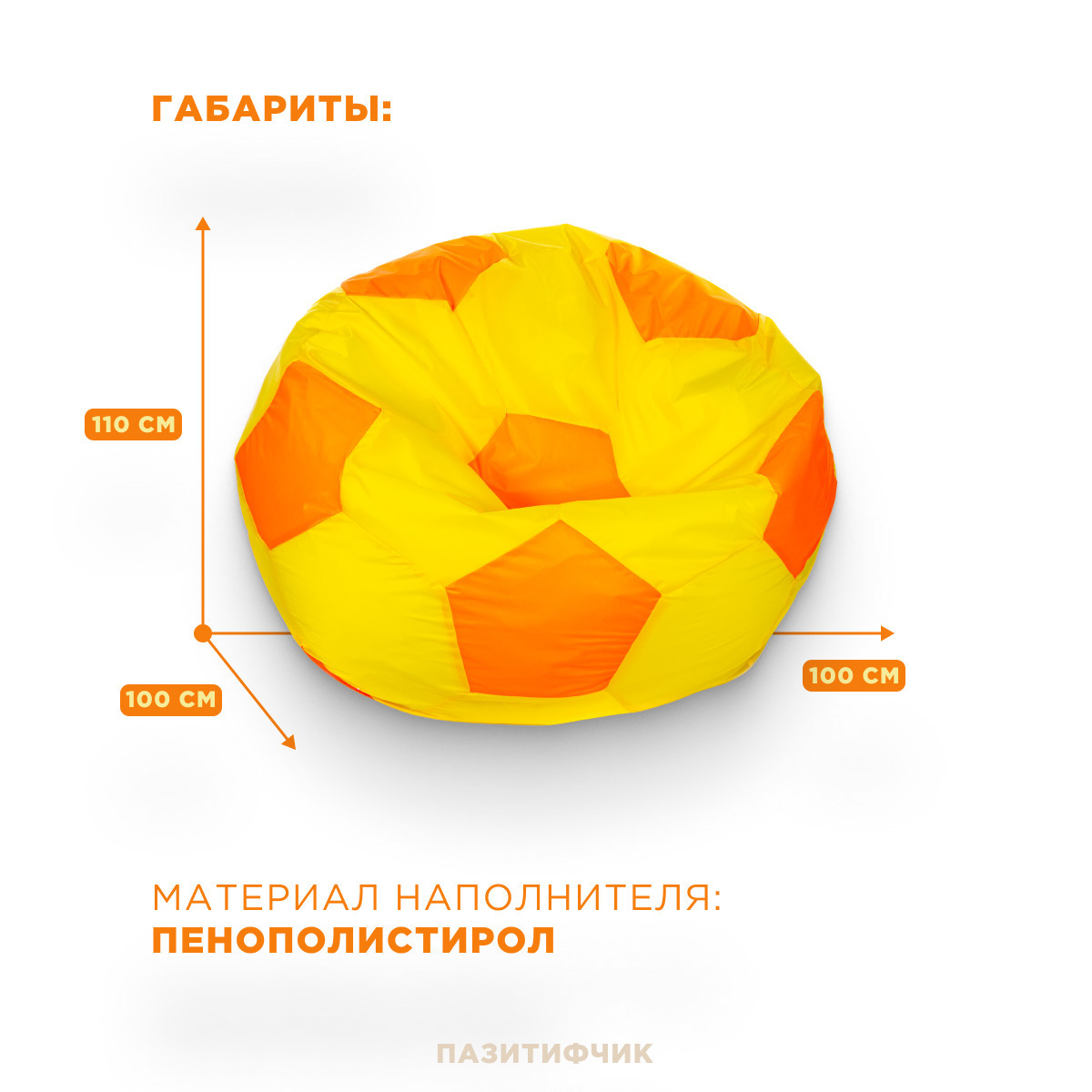 Кресло-мешок мяч Пазитифчик Желто-Оранжевый (оксфорд) 110х100 см