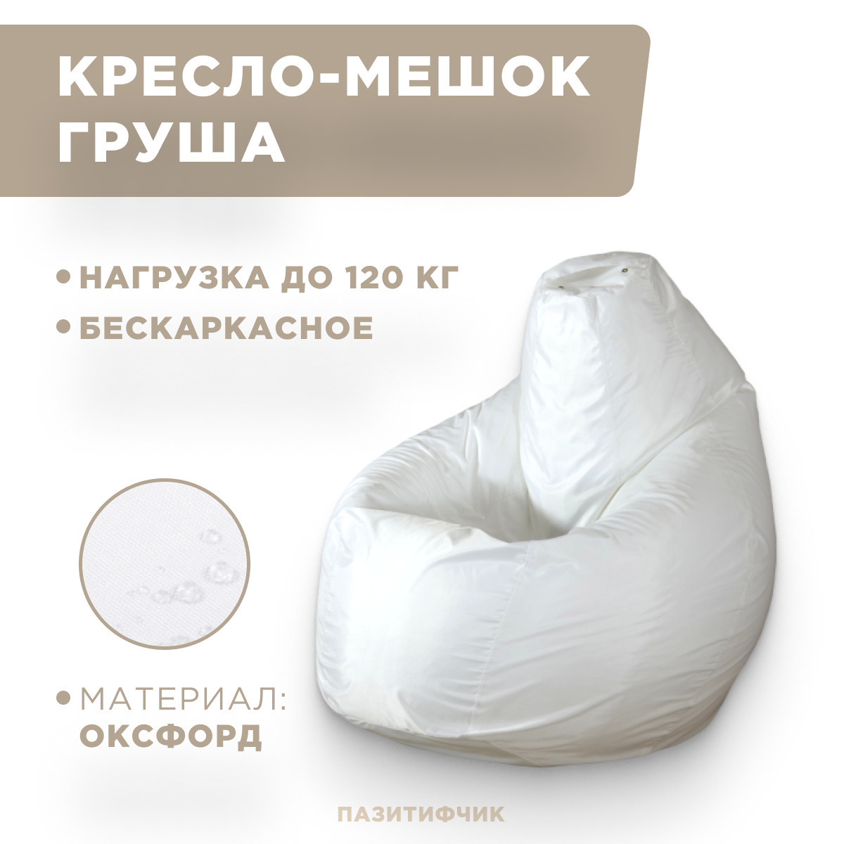Кресло мешок груша Пазитифчик Белый (оксфорд) 145х100 см