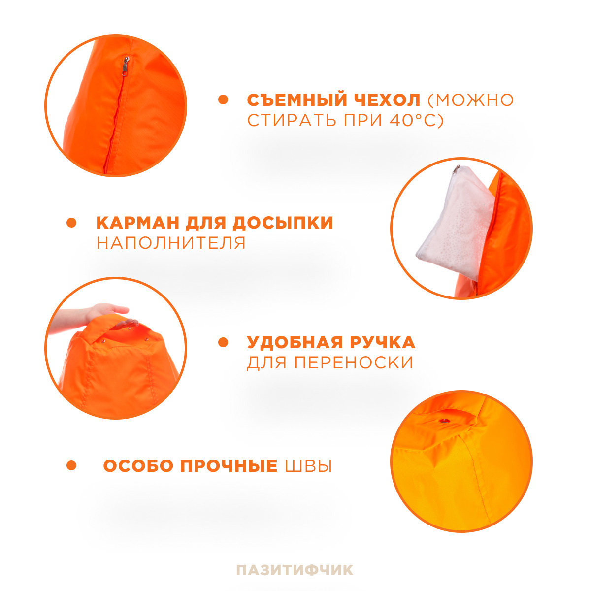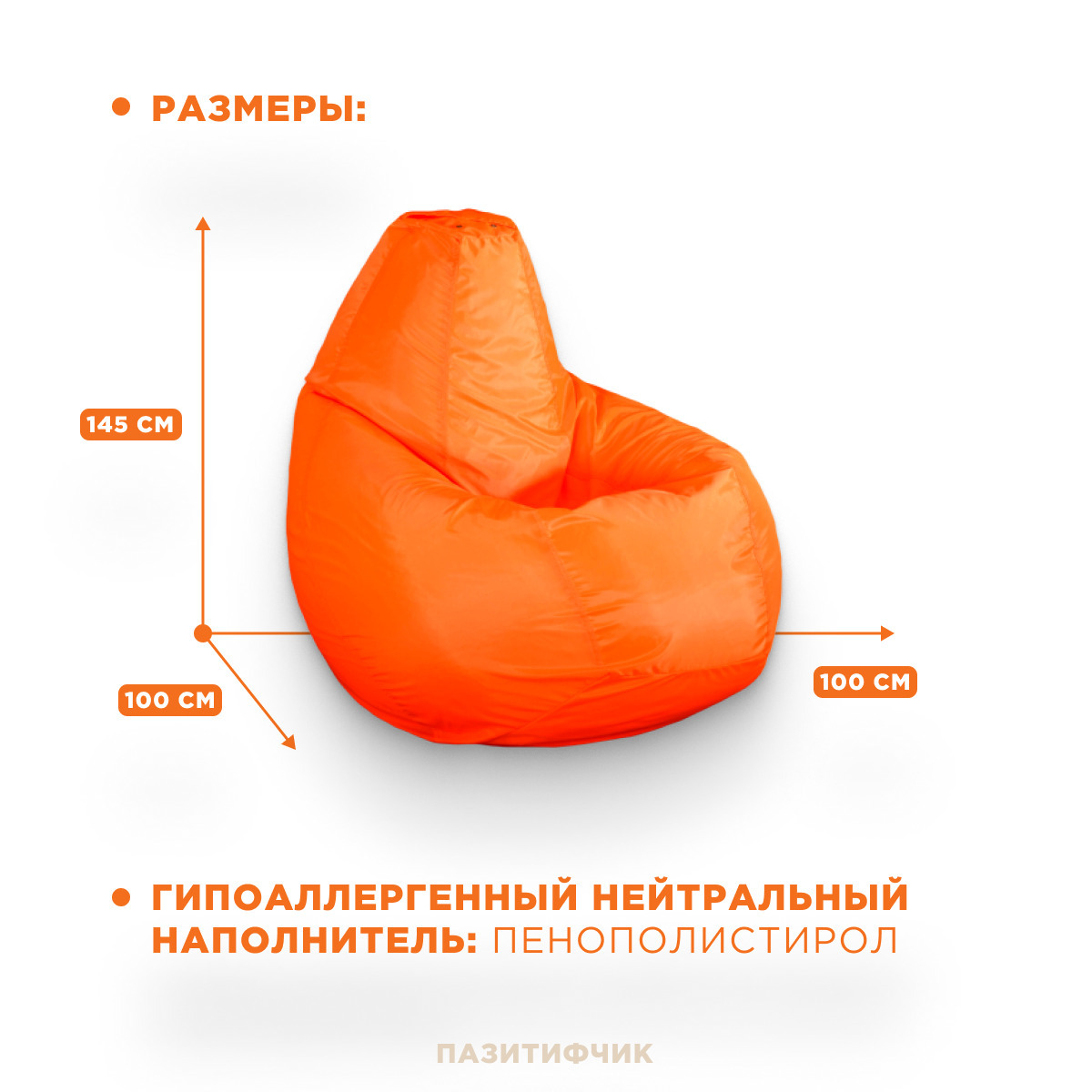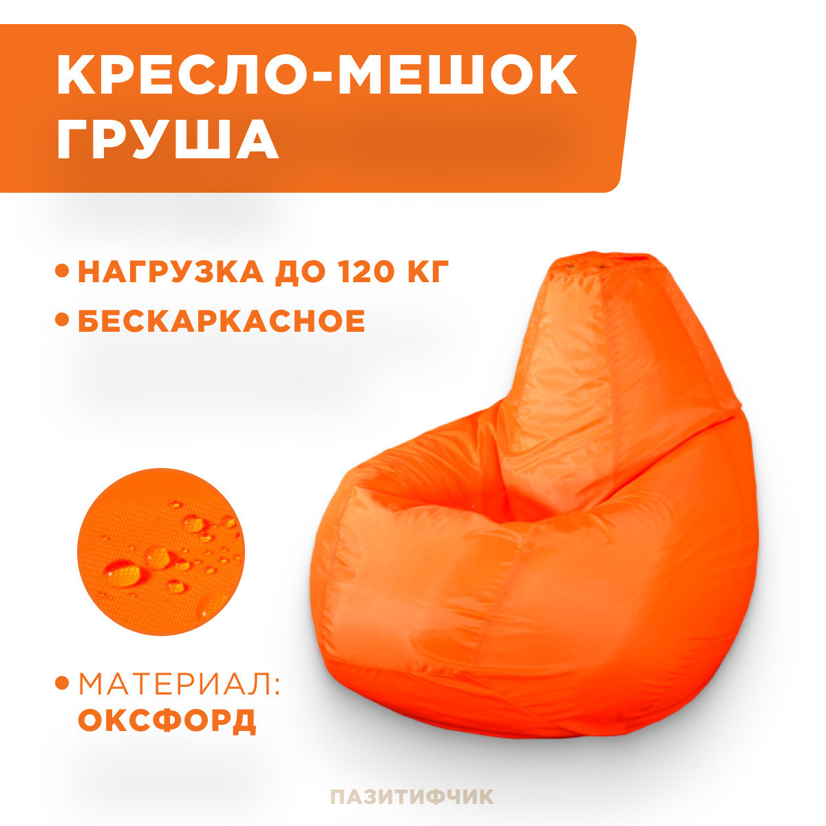 Кресло мешок груша Пазитифчик Оранжевый (оксфорд) 145х100 см