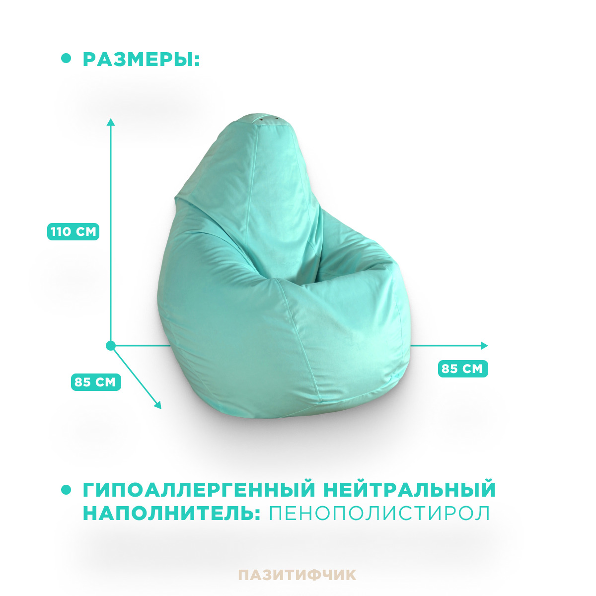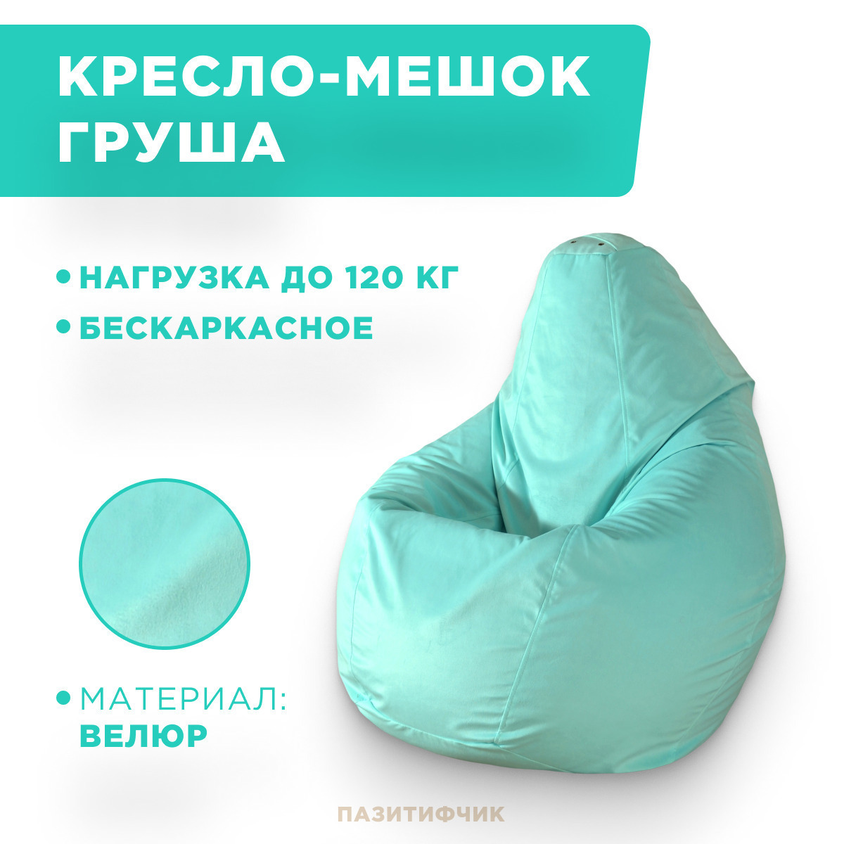 Кресло мешок груша Пазитифчик Мятный (велюр) 110х85 см