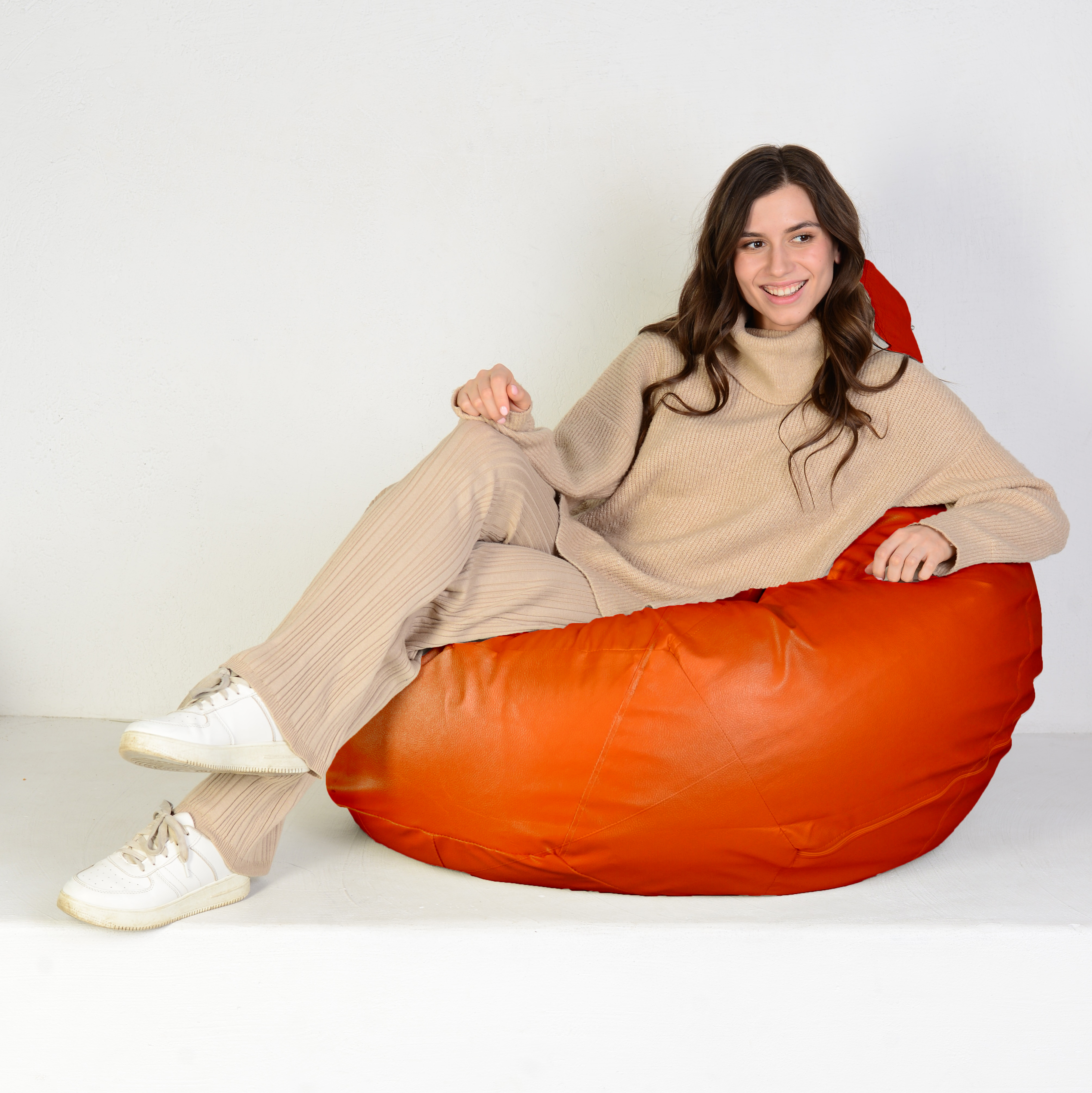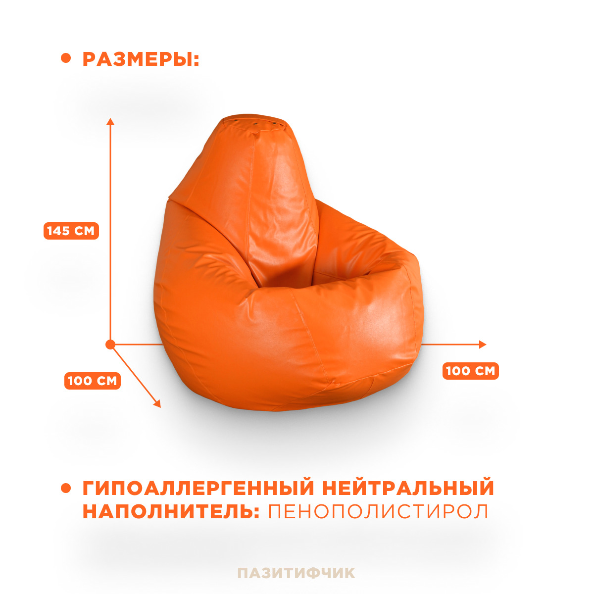 Кресло мешок груша Пазитифчик Оранжевый (экокожа) 145х100 см