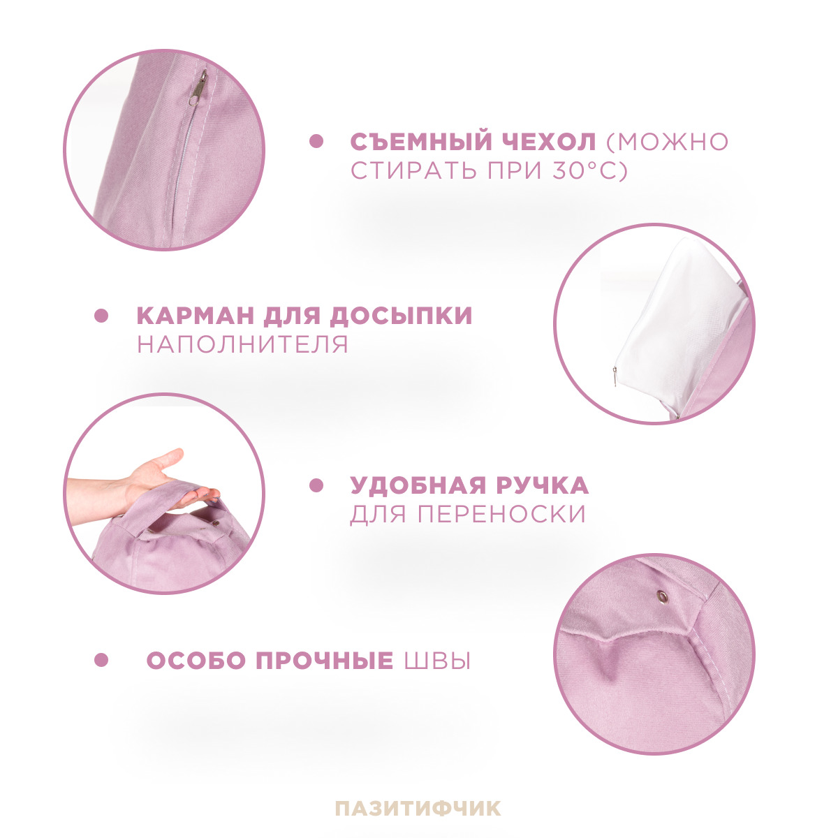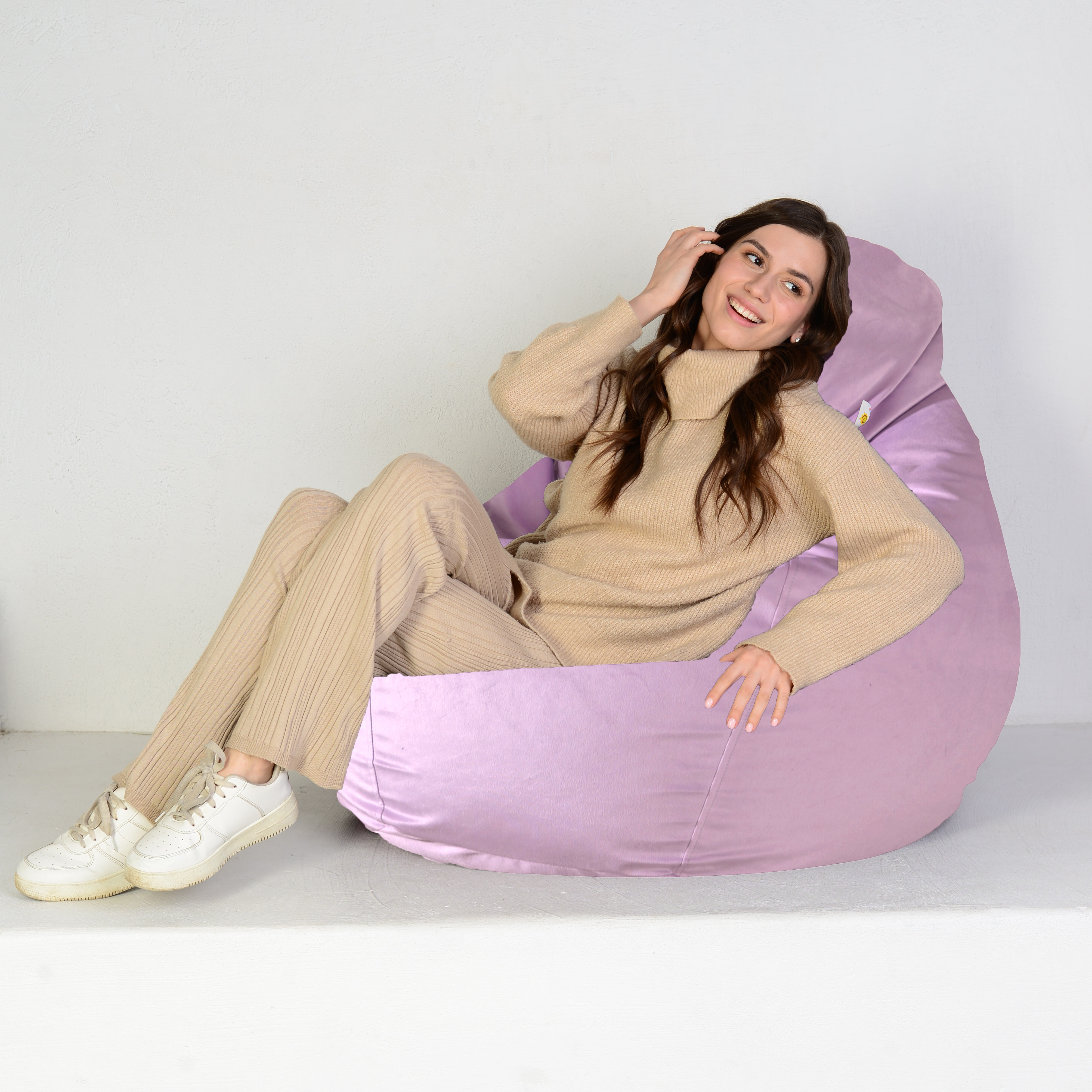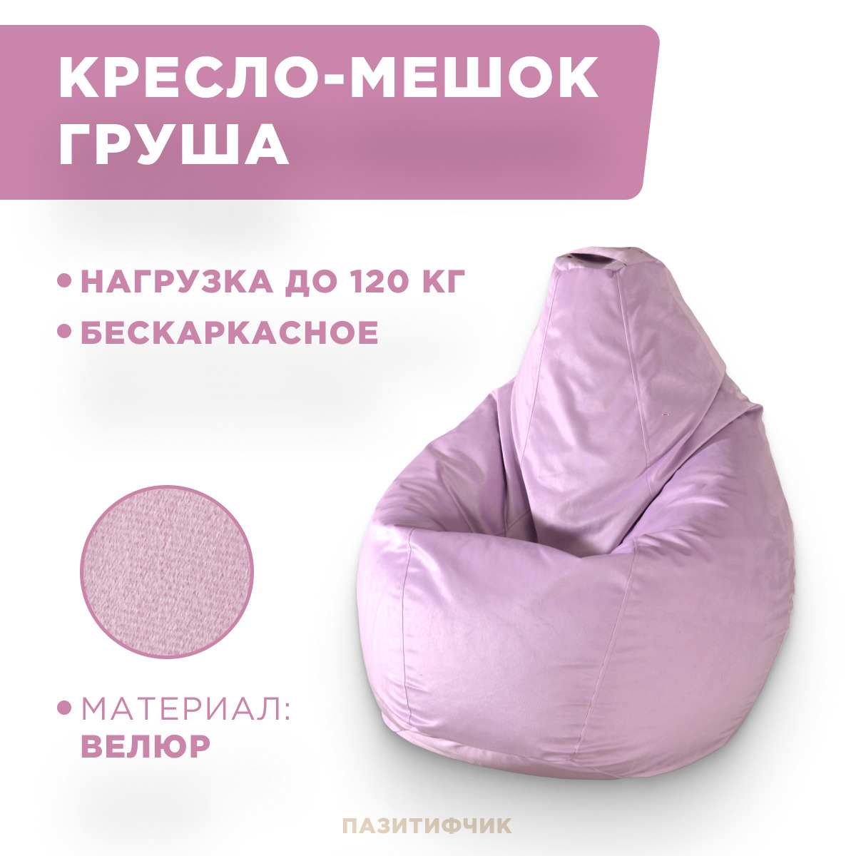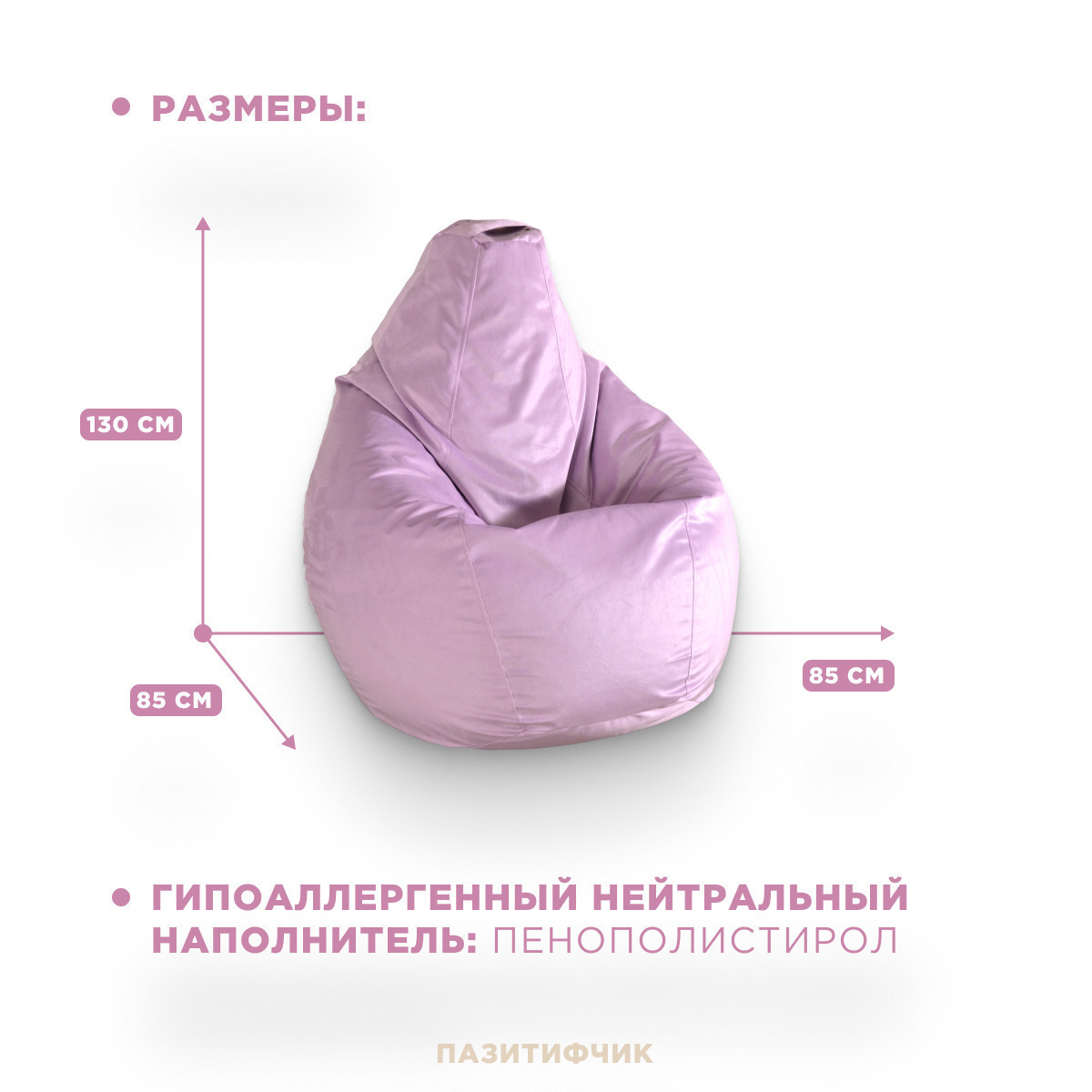 Кресло мешок груша Пазитифчик Сиреневый (велюр) 130х85 см