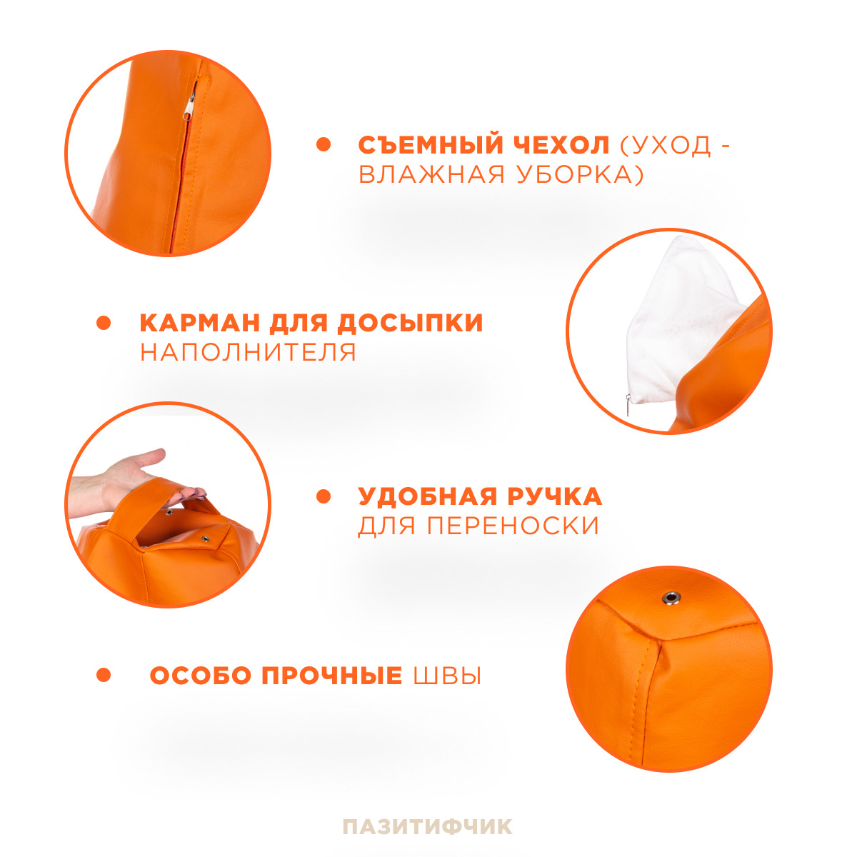 Кресло-мешок мяч Пазитифчик Оранжево-Белый (оксфорд) 110х100 см