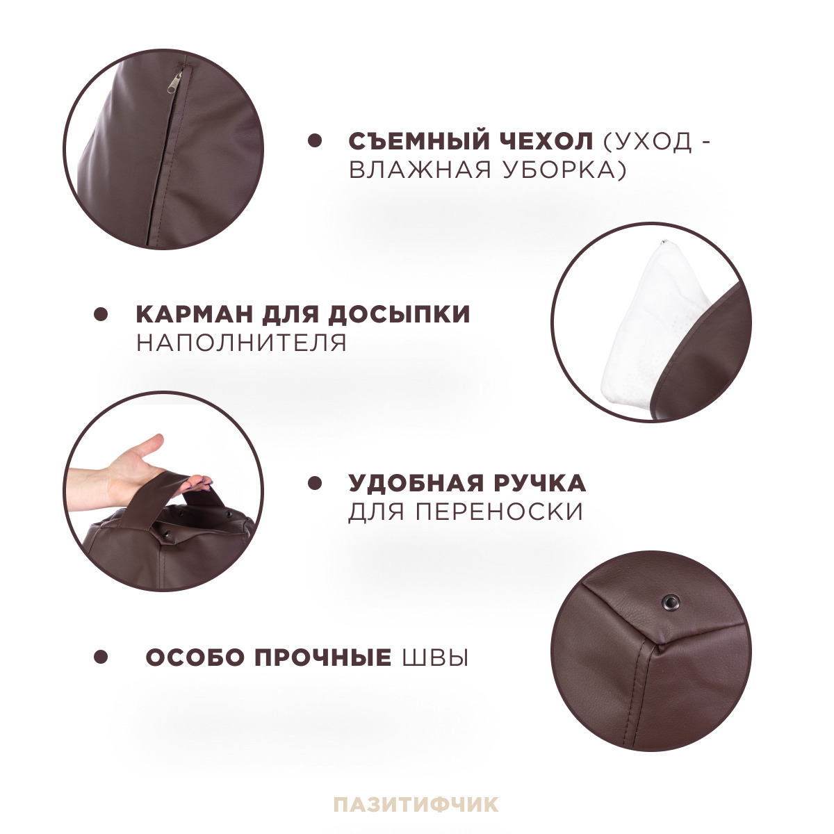 Кресло мешок груша Пазитифчик Коричневый (экокожа) 130х85 см