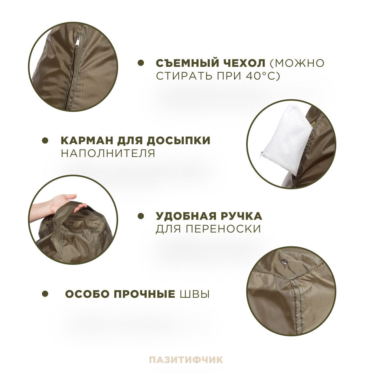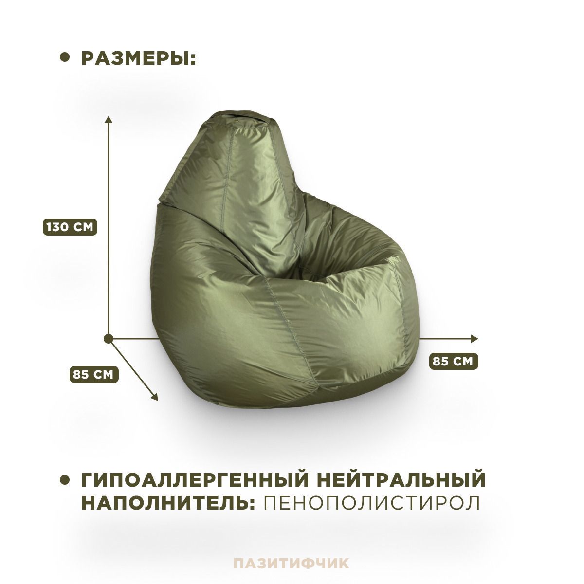 Кресло мешок груша Пазитифчик Хаки (оксфорд) 130х85 см