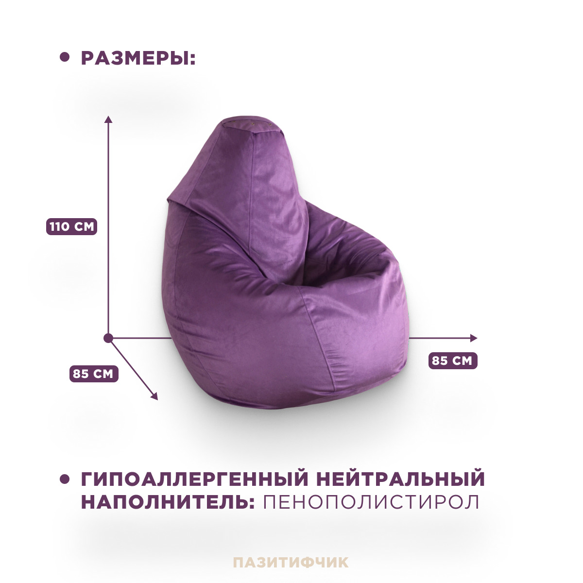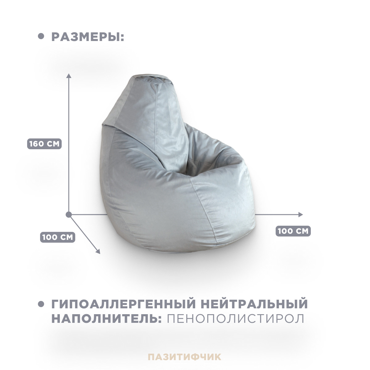 Кресло-мешок Пазитифчик Груша, Велюр натуральный, Размер XXL