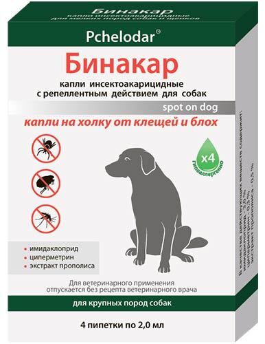 Капли для собак Бинакар на холку инсектоакарицидные 2мл.