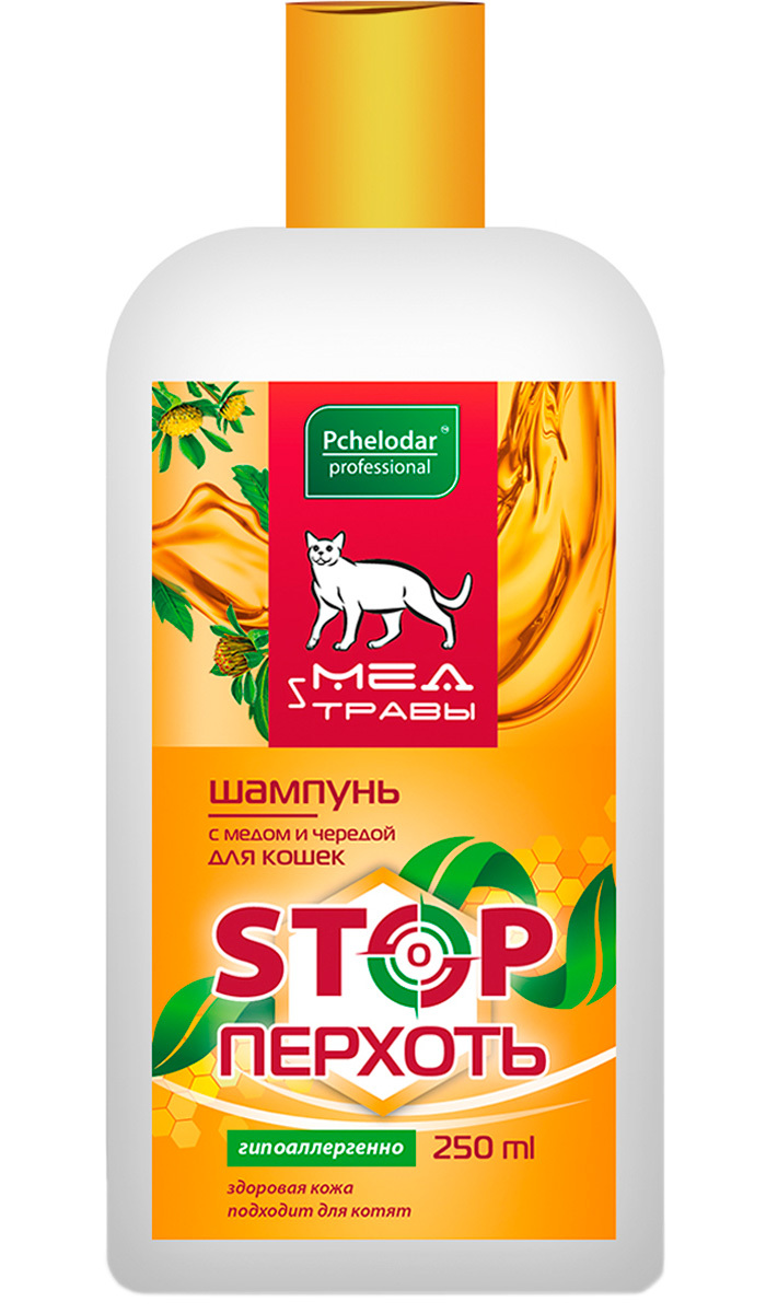 Шампунь ПЧЕЛОДАР STOP ПЕРХОТЬ для кошек с медом и чередой 250 мл