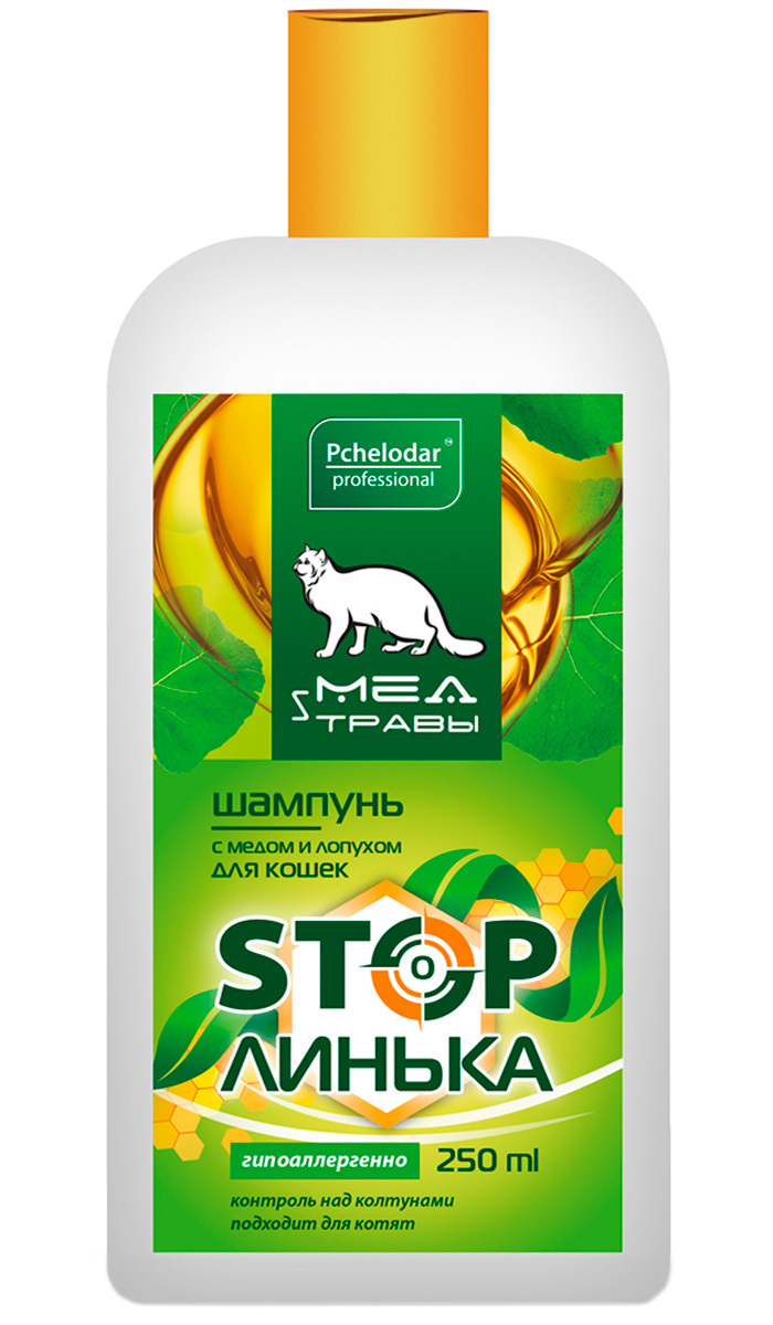 Шампунь ПЧЕЛОДАР STOP ЛИНЬКА шампунь для кошек с медом и лопухом 250 мл
