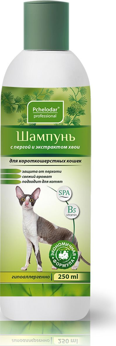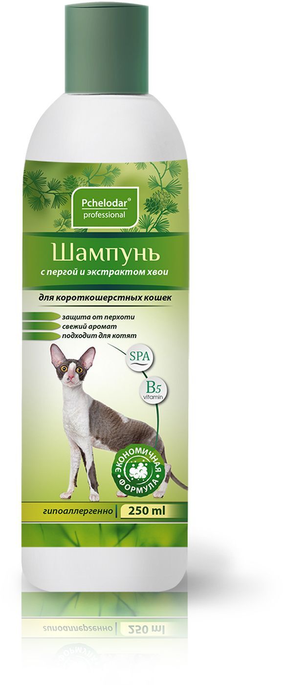 Пчелодар Шампунь с пергой и хвоей для короткошерстных кошек 250мл