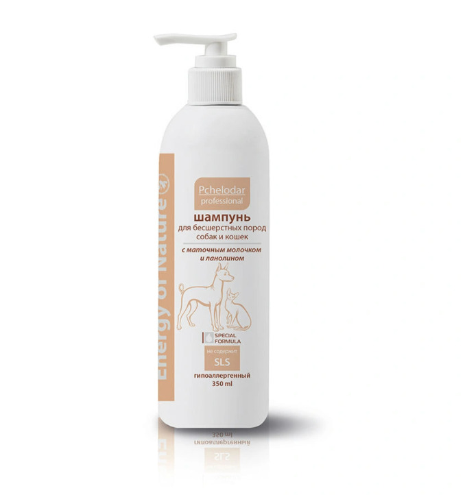 Шампунь для безшерстных собак и кошек ПЧЕЛОДАР с маточным молочком и ланолином 350мл