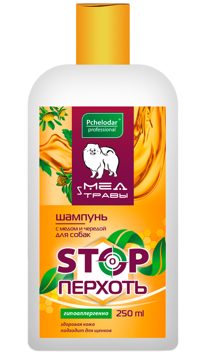 Шампунь ПЧЕЛОДАР STOP ПЕРХОТЬ шампунь для собак с медом и чередой 250 мл