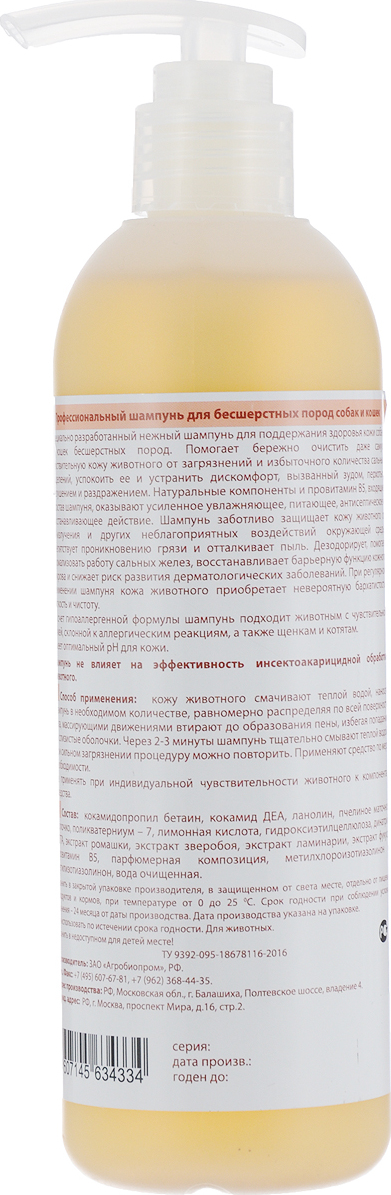 Шампунь "Пчелодар" для бесшерстных пород собак и кошек, 350 мл