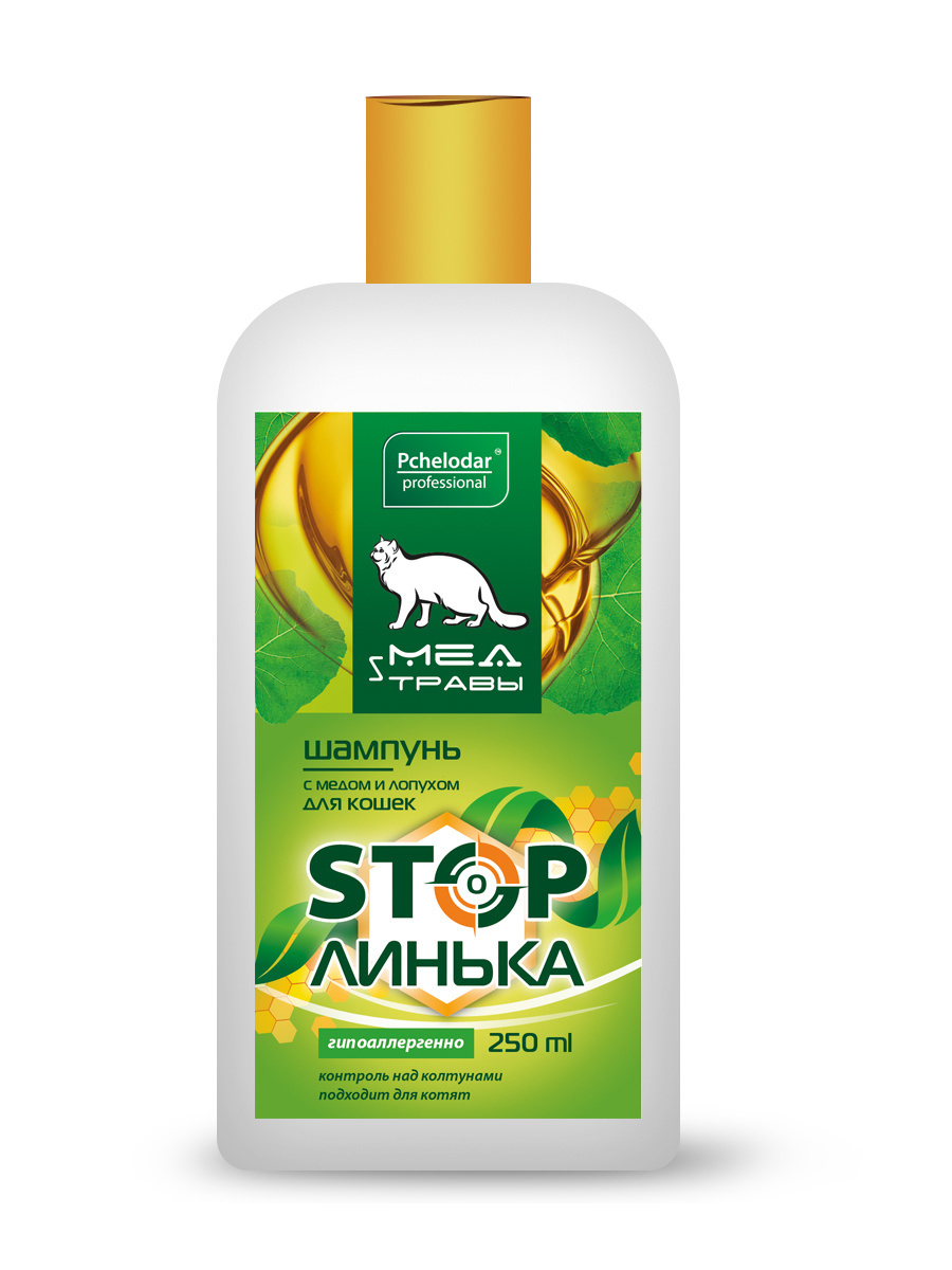 Пчелодар шампунь с мёдом и лопухом для кошек "Стоп Линька"