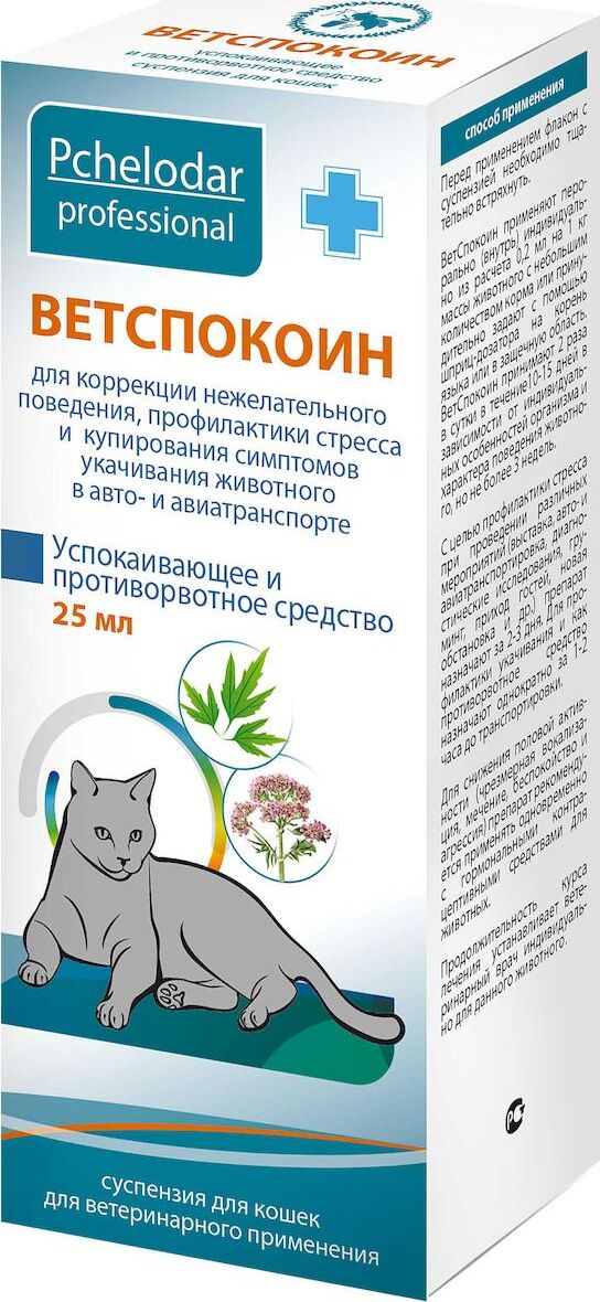 Суспензия Пчелодар Ветспокоин, для кошек, 1079, 25 мл