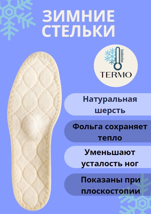 Стельки ортопедические от плоскостопия, мужские и женские, взрослые для обуви, зимние с шерстью р.36