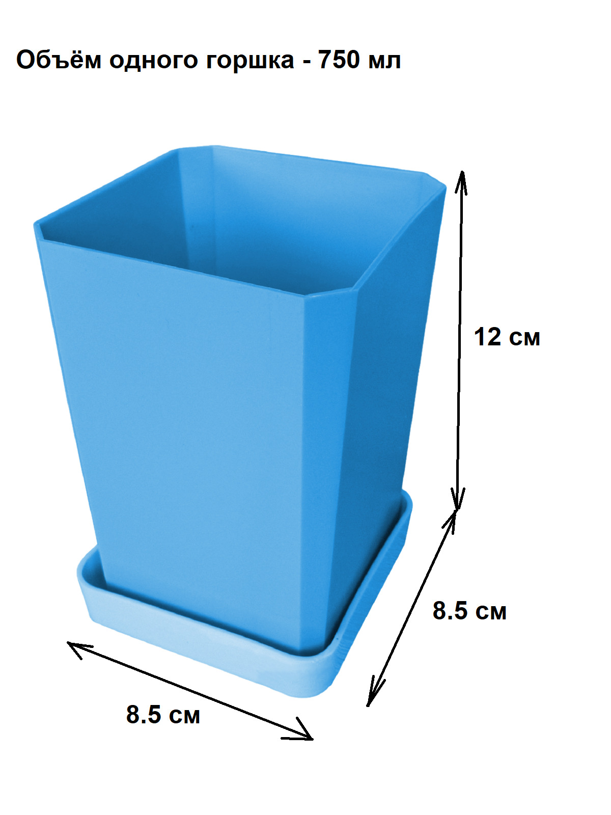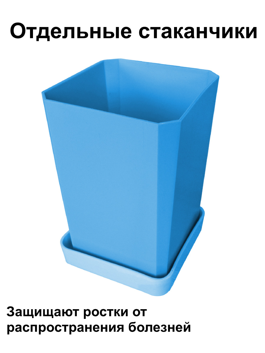 Горшки для рассады и цветов, 8 штук на отдельных поддонах, синие