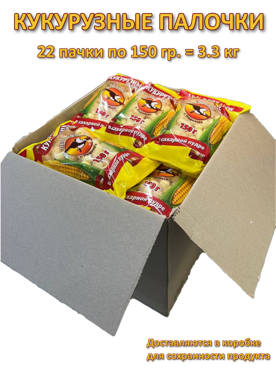 Кукурузные палочки Пеликан, натуральные, в коробке, 22 пачек по 150 г (3.3 кг)