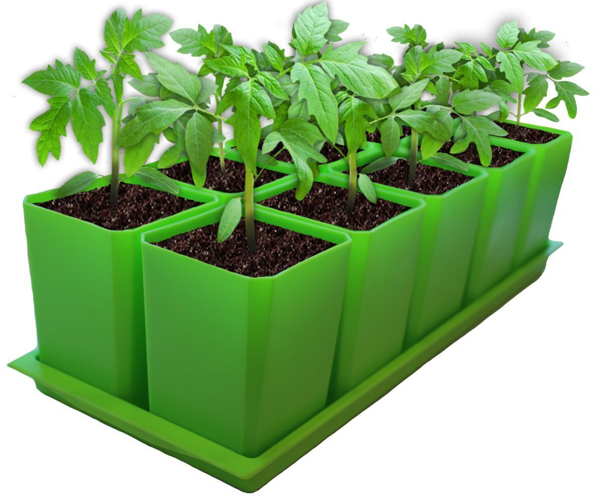 Горшки для рассады и цветов, набор из 10 горшков по 750 мл и поддона, Зеленый