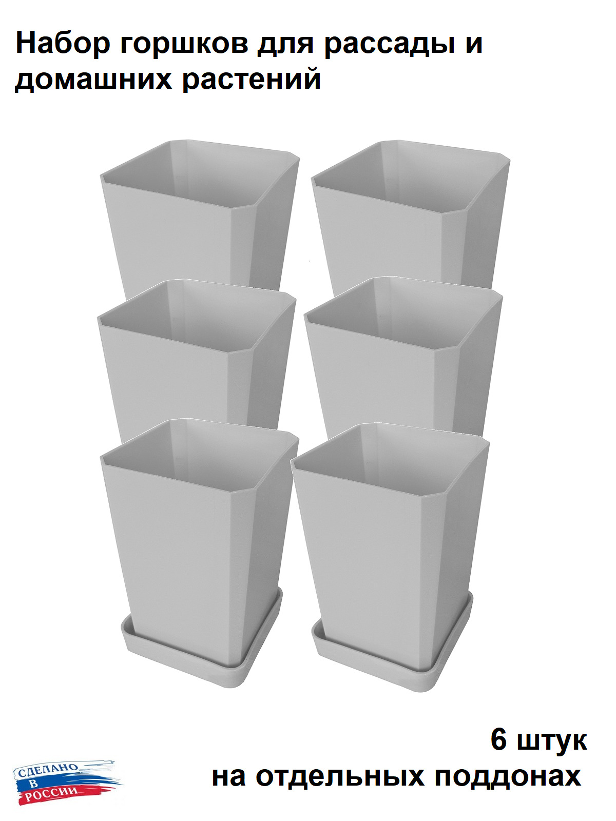Горшки для рассады, набор из 6 штук по 750 мл, Антрацит