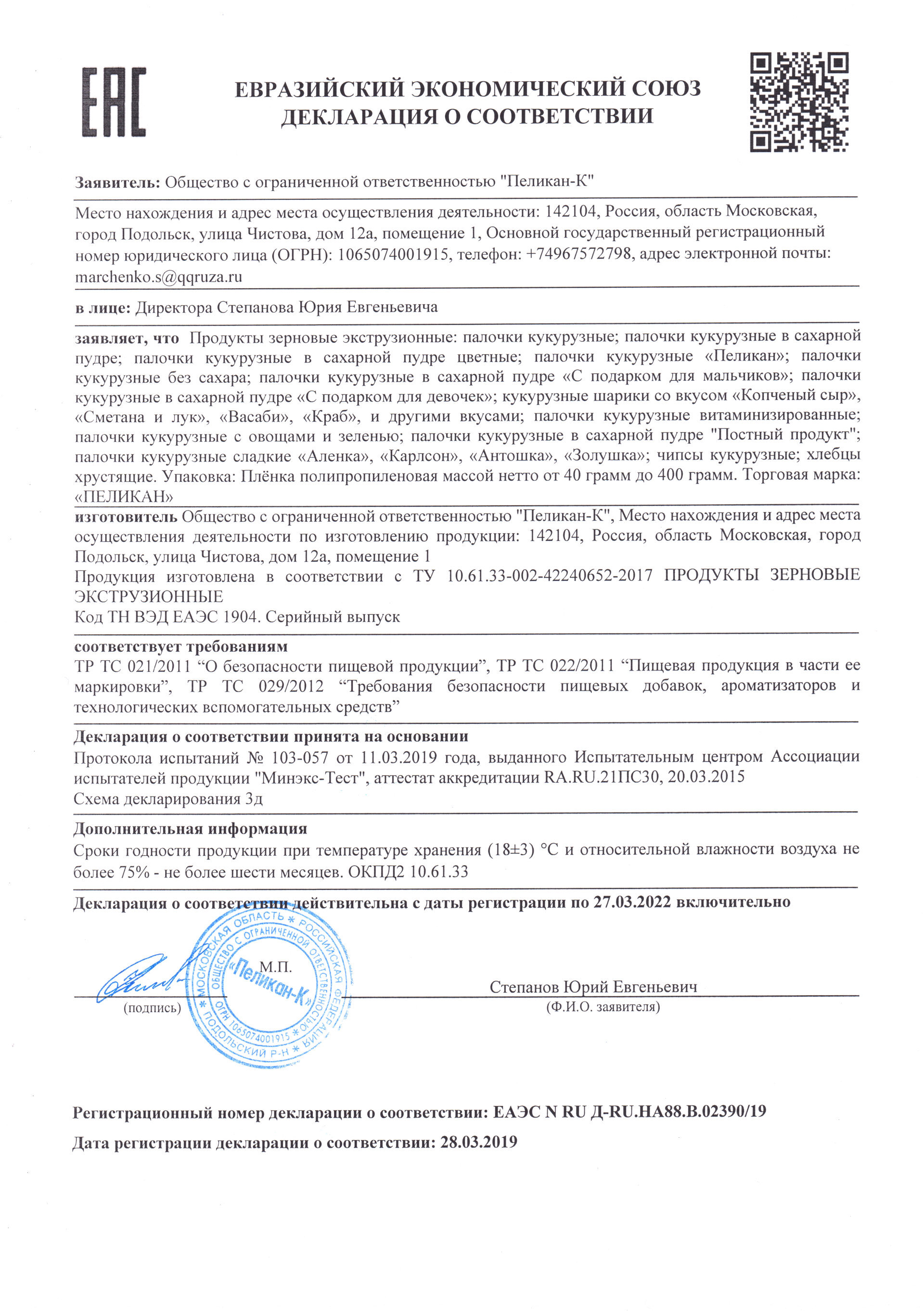 Кукурузные палочки Пеликан, 38 пачек по 65 г (2.47 кг)