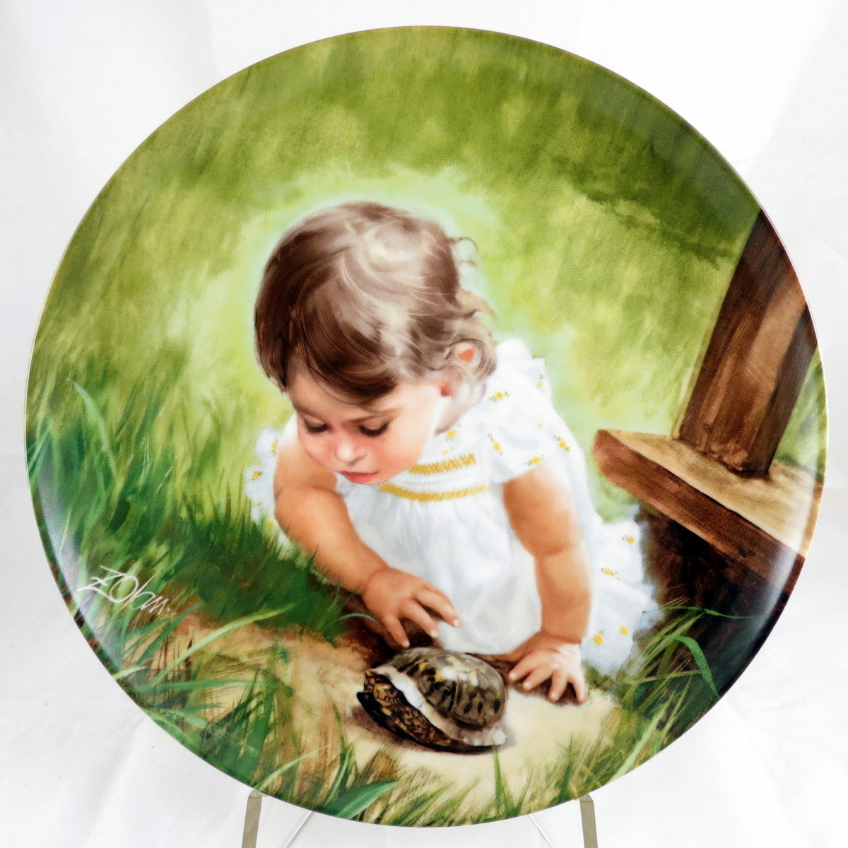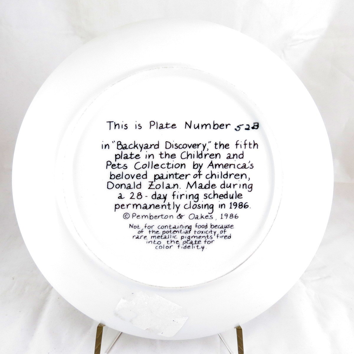 Декоративная коллекционная тарелка "Дети и Животные: Открытие На Заднем Дворе". Фарфор, деколь. США, Pemberton & Oakes, Дональд Золан, 1986