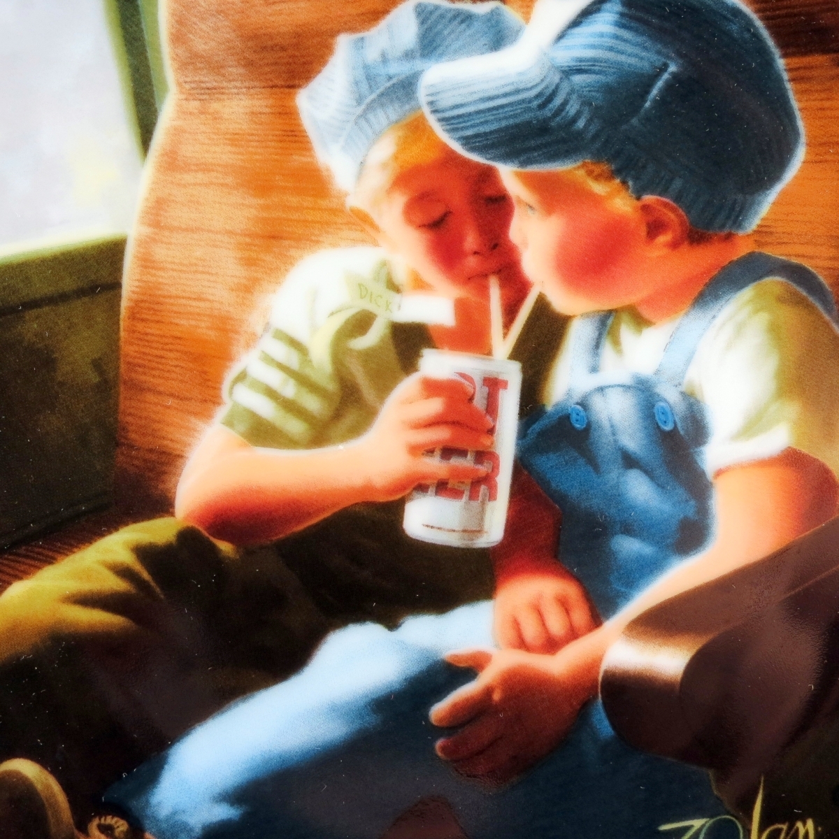 Декоративная коллекционная тарелка "Особые моменты: Рожок для двоих". Фарфор, деколь. США, Pemberton & Oakes, Дональд Золан, 1990