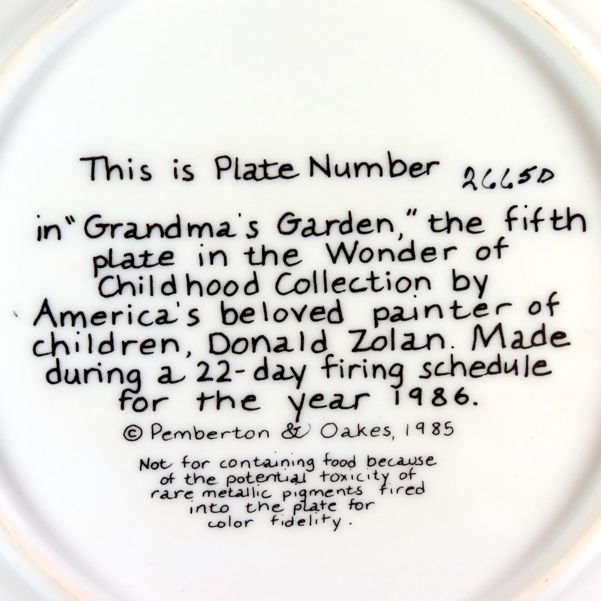 Декоративная коллекционная тарелка "Чудо Детства: Бабушкин Сад". Фарфор, деколь. США, Pemberton & Oakes, Дональд Золан, 1985