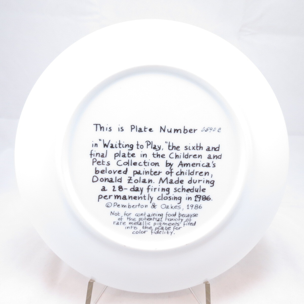 Декоративная коллекционная тарелка "Дети и Животные: В ожидании игры". Фарфор, деколь. США, Pemberton & Oakes, Дональд Золан, 1986
