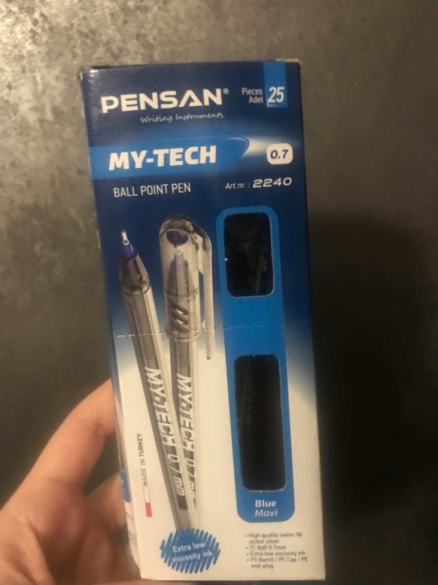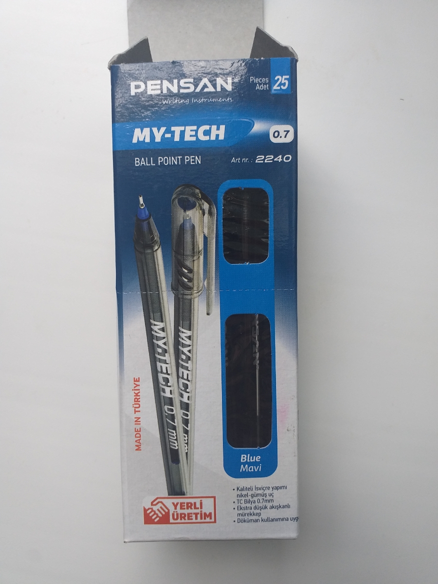 Ручка шариковая Pensan "My Tech" СИНЯЯ, 25 шт. в упаковке, узел 0,7 мм, линия письма 0,35 мм