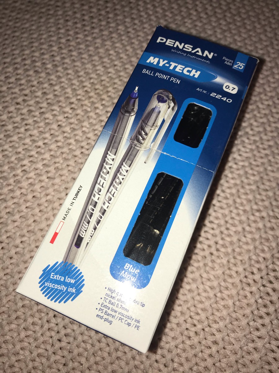 Ручка шариковая одноразовая Pensan My Tech синяя (толщина линии 0.7 мм) 25 штук