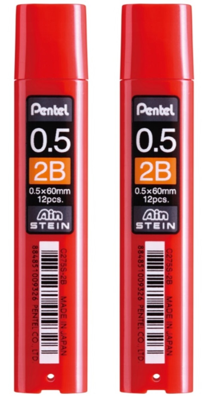 Грифели PENTEL, "Ain Stein", 2В, 0,5 мм, C275S-2B, 2 тубы по 12 шт.
