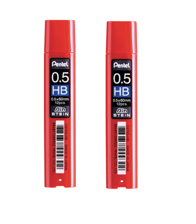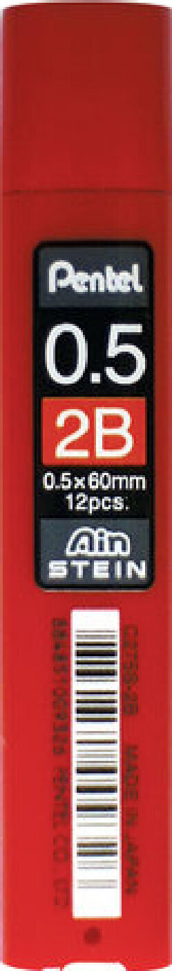 Грифели запасные PENTEL (Япония) в КОМПЛЕКТЕ из 12 шт., "Ain Stein", 2В, 0,5 мм, C275S-2B 2уп.