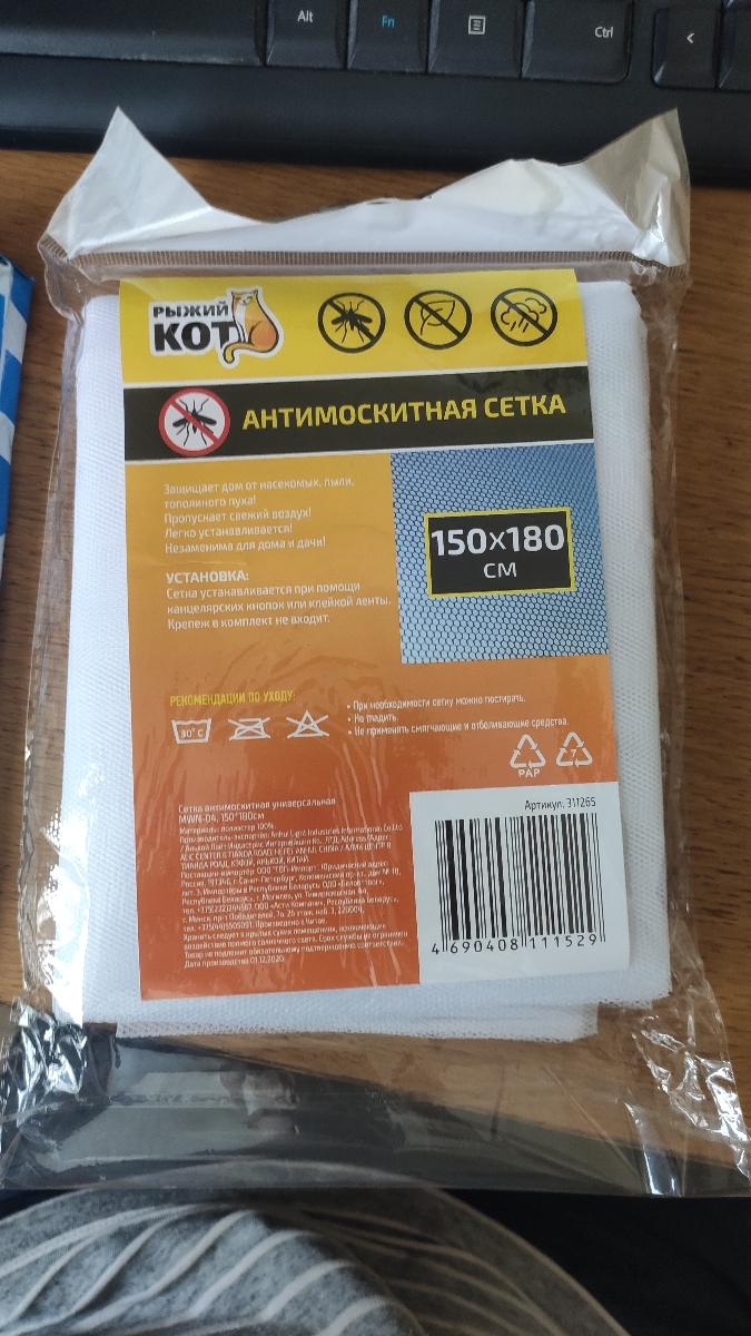 Москитная сетка полиэфирная 1,5 х 1,8м, цвет белый, от мух, комаров, клещей, гнуса, мошек, пыли, косого дождя, сквозняка и грязи