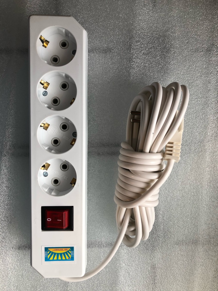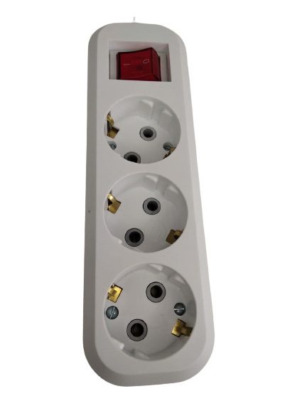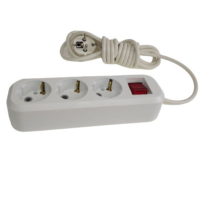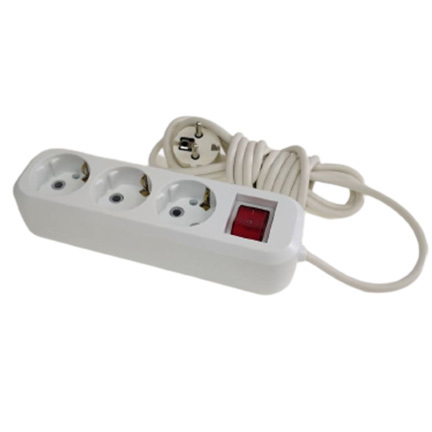 Удлинитель сетевой с заземлением, 3 гнезда с переключателем, шнур ПВС 3х0,75, 2 м