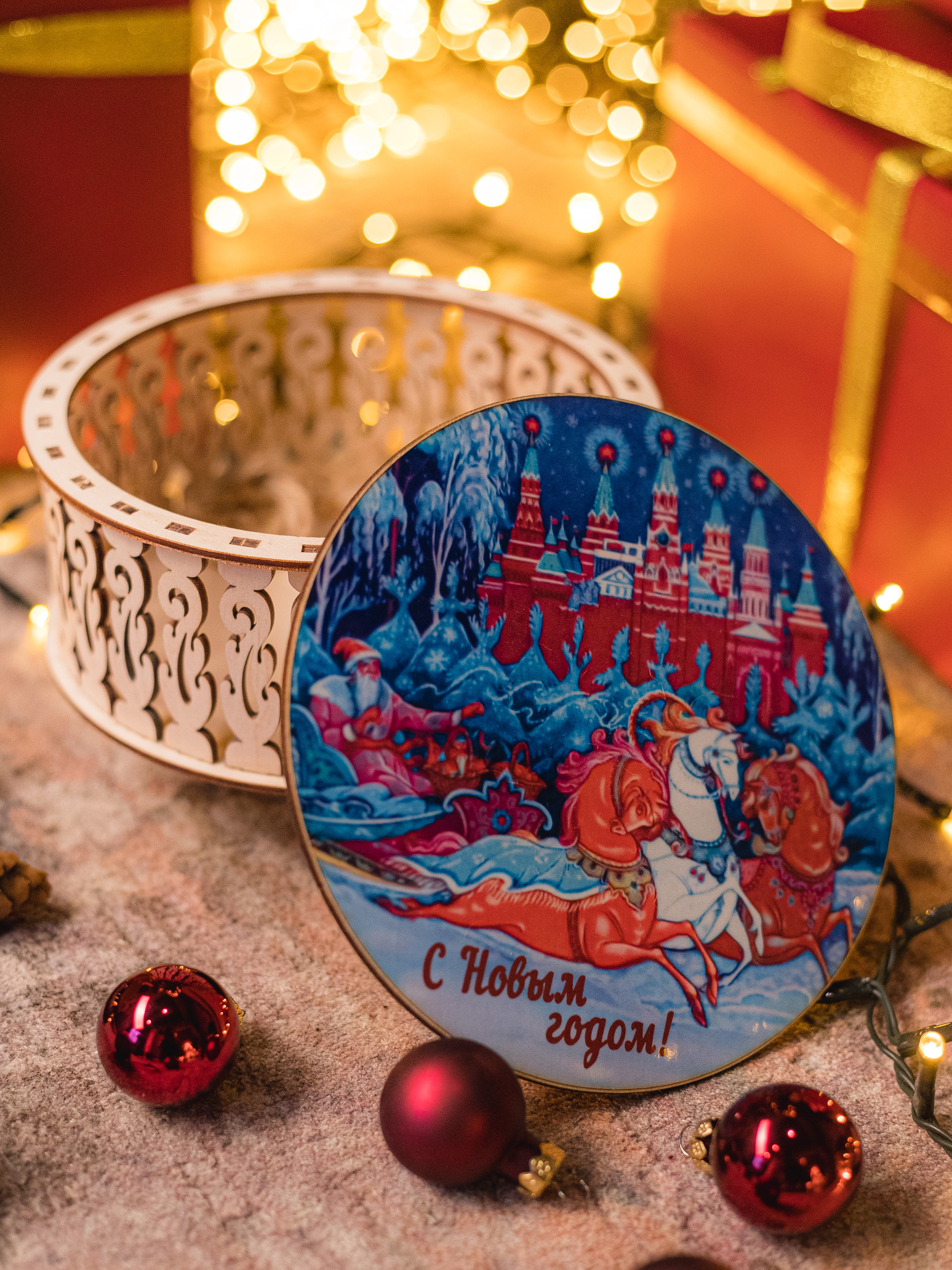 Шкатулка круглая "Кремль. Зима" AS-099-12