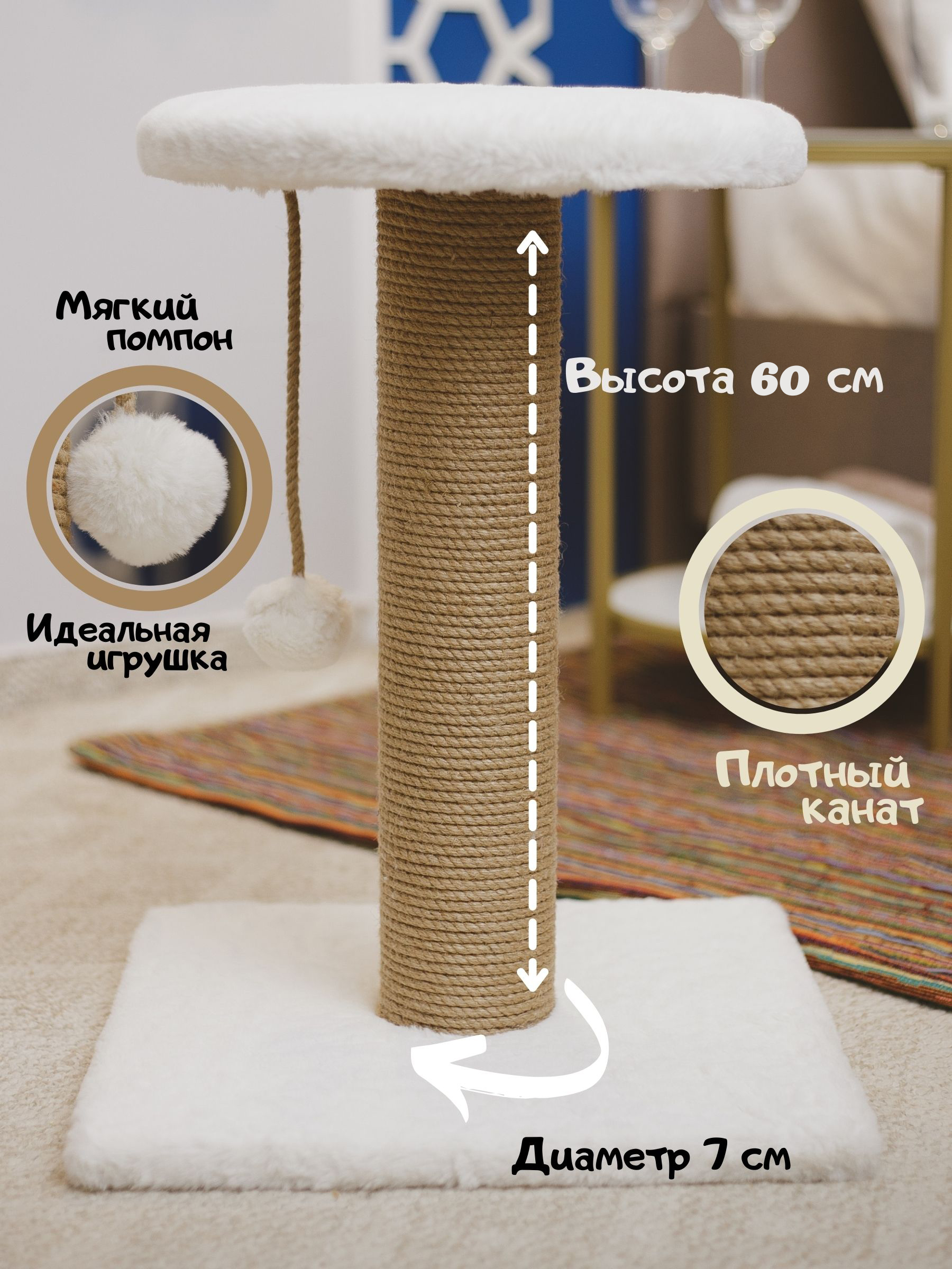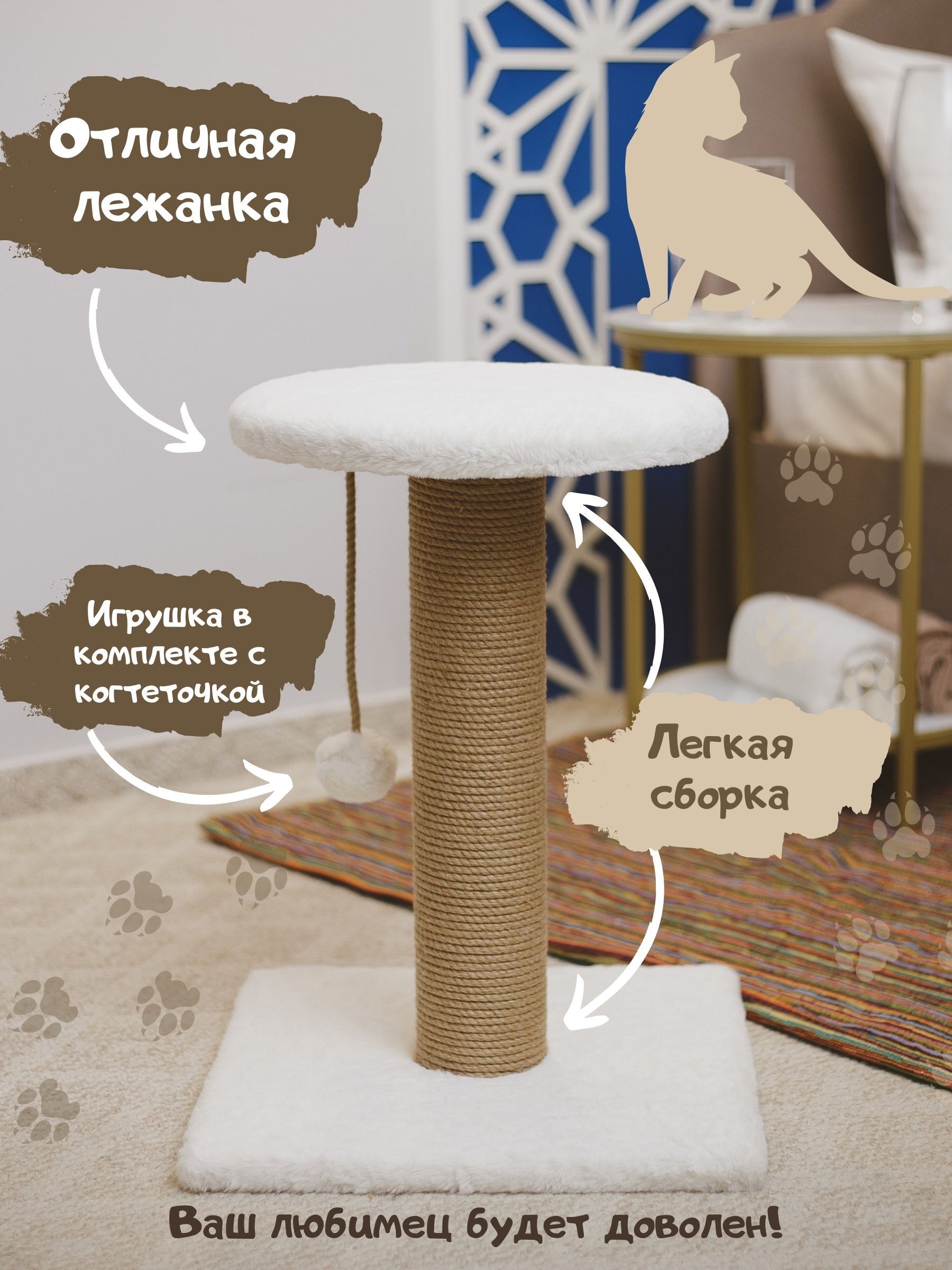 Когтеточка столбик с лежанкой/ Когтеточка из джута для кошки