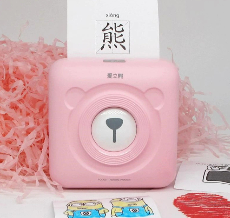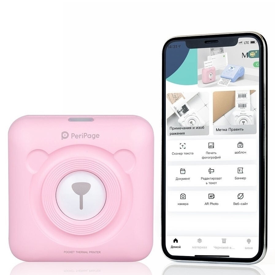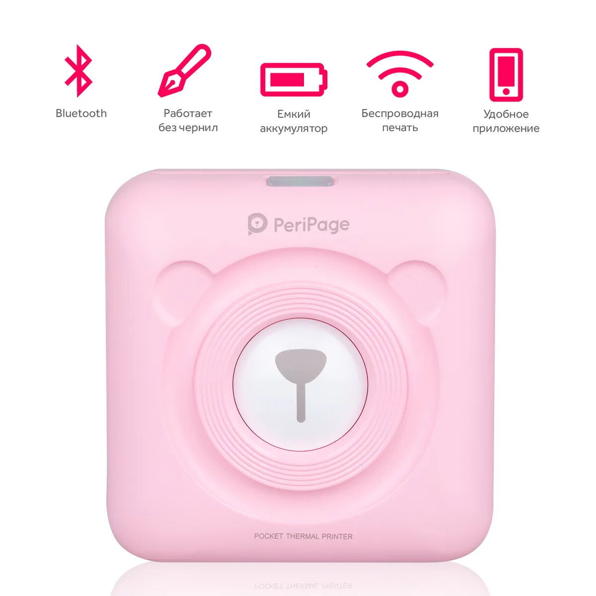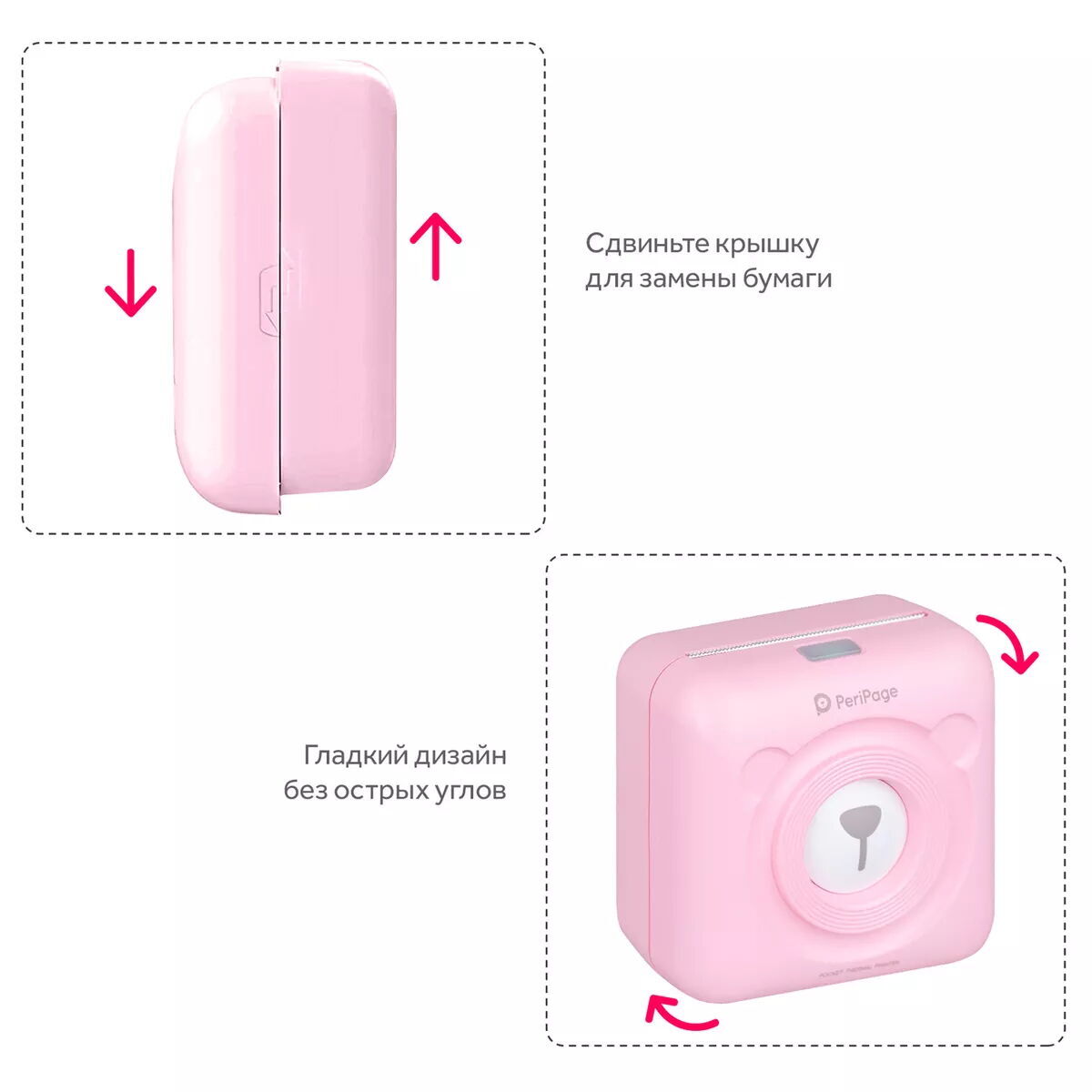 Мини-принтер, Принтер для чеков/наклеек термо Peripage термотрансферный, розовый